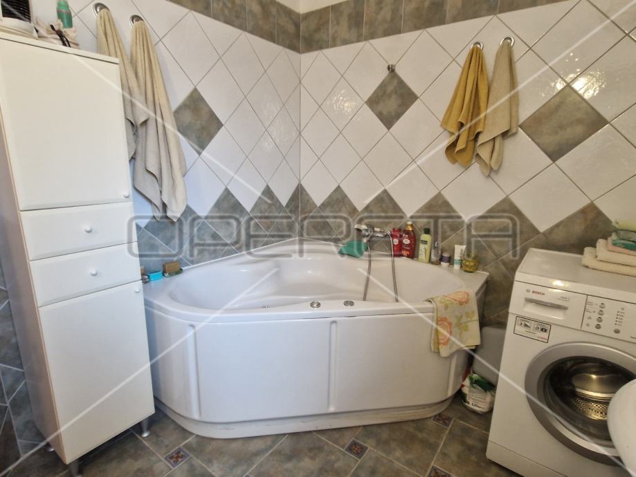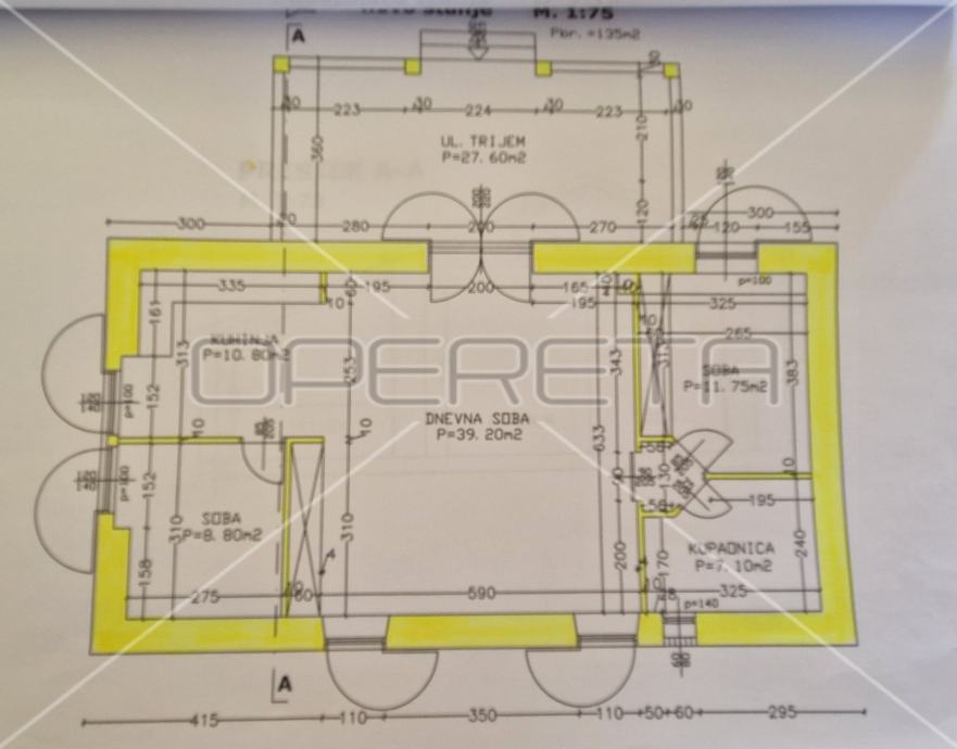 Površina od 136 m2 se dijeli na unutarnji stambeni dio od 104 m2 i natkirevene terase od 32 m2 koju je moguće i zatvoriti,