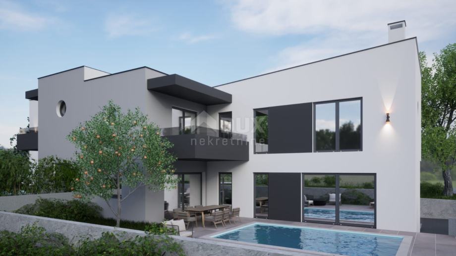 Na dobroj lokaciji udaljenoj 3 minute vožnje od prvih plaža prodaje se moderna dvojna kuća.