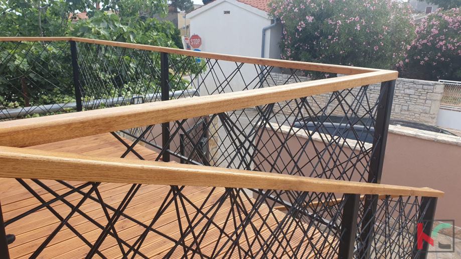 Na gornjem je katu smješten drugi stan sa terasom, kuhinjom, blagovaonom, spavaćom sobom sa kupaonicom i galerijom sa dva kreveta.
