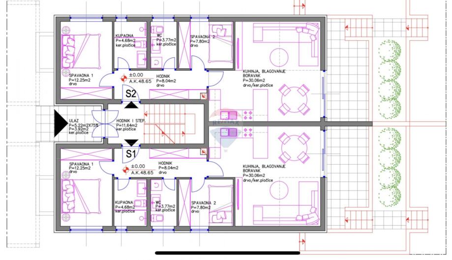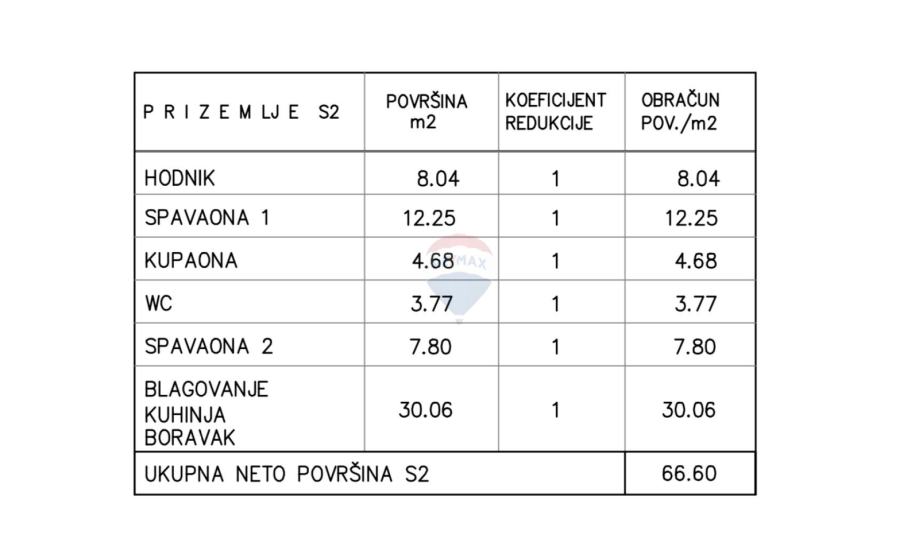 odvojenog toaleta, terase i vrta. Stan je neto korisne površine 66.60m2 a vrt je 120m2 (reducirane površine 12m2).