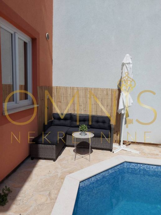 Na lijepo uređenoj okućnici ukupne površine 170m2 nalazi se bazen od 24 m2, ležaljke i roštilj, te tri parkirna mjesta.