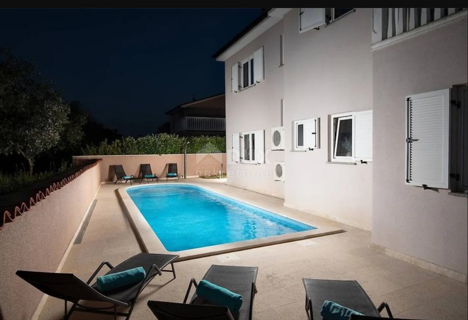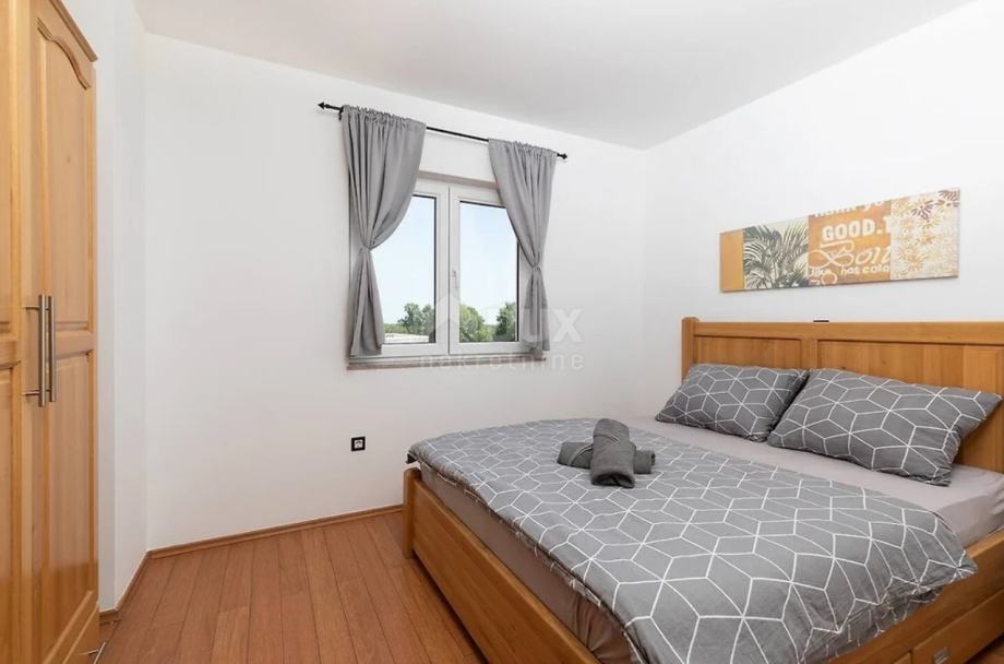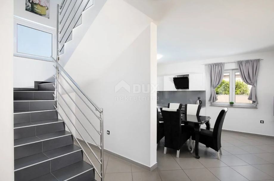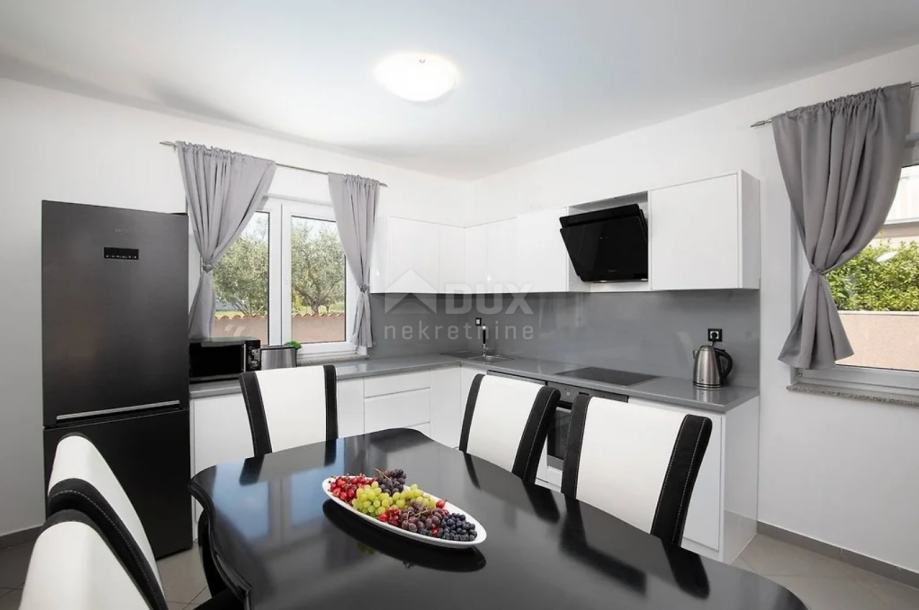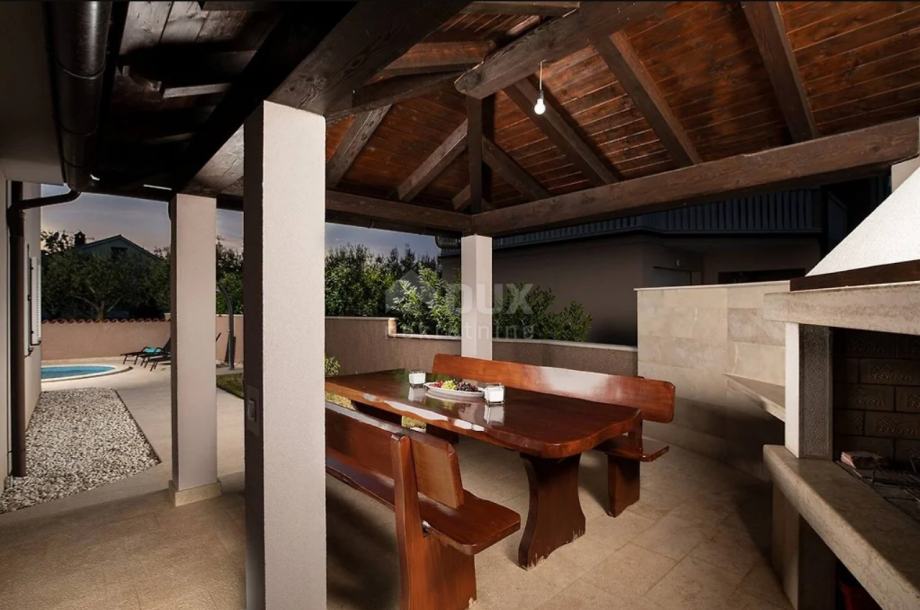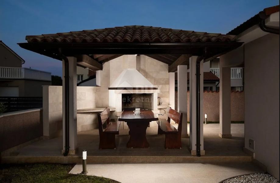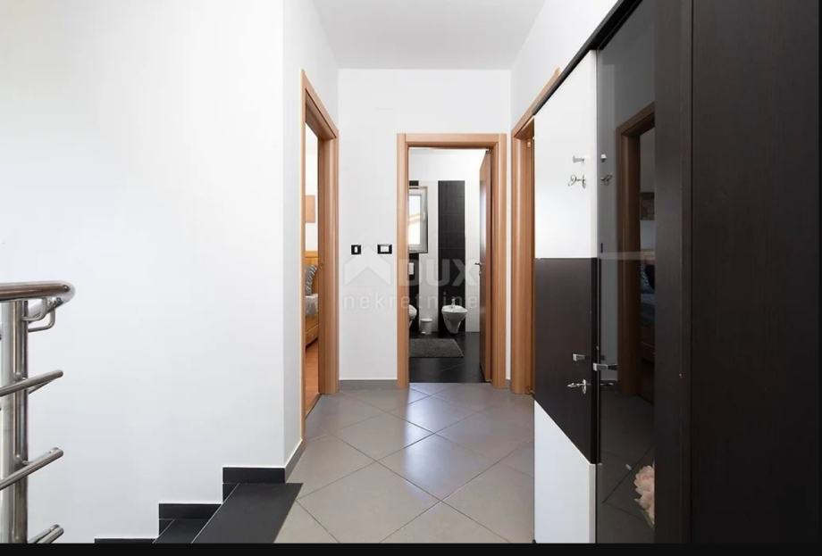 Na odličnoj mirnoj poziciji u naselju pored Pule nalazi se ova primamljiva vila s bazenom. Vila se nalazi na zemljištu od 424 m2, te se sastoji od 2 etaže. Na prizemlju se nalazi natkrivena ulazna terasa, hodnik, dnevni boravak s kuhinjom i blagovaonom s izlazom na terasu i dvorište, špajza i wc, unutrašnje stepenište vodi nas na 1. kat gdje se nalaze 3 spavaće sobe i 2 kupatila. Master spavaća soba ima svoje kupatilo i izlaz na veliku L terasu.
