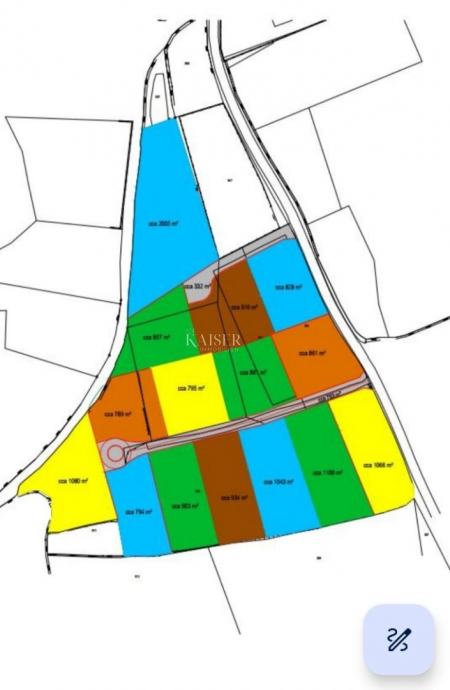 U ovom slučaju prodaje zemljišta nudi se jedinstvena prilika, naime ova dva zemljišta se nalaze uz preostalih 13 građevinskih zemljišta koje prodavatelj odvaja i nuditi će u prodaju pojedinačno ili cijelu parcelu u komadu. Prodavatelj je krenuo u postupak parcelacije zemljišta, te će novim planom dobiti 15 parcela veličine po 700/800 m2. Između parcela planiran je još jedan put koji će cijelo naselje povezivati. Cijela površina iznosi 13 000 m2, ukupna cijena 1.100.000,00 Eura.