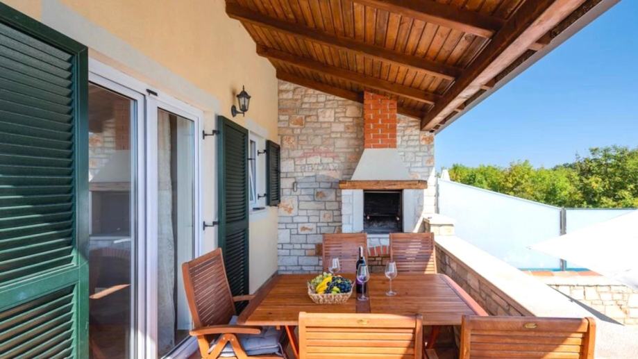 Kuća ima vlastiti ulaz i potpuno je odvojena od drugog dijela, što doprinosi intimi pri korištenju vanjskog dijela, gdje se nalazi prostrani bazen dimenzija 7 x 3.5 m. Uz to, kuća posjeduje i vlastito parkirno mjesto.