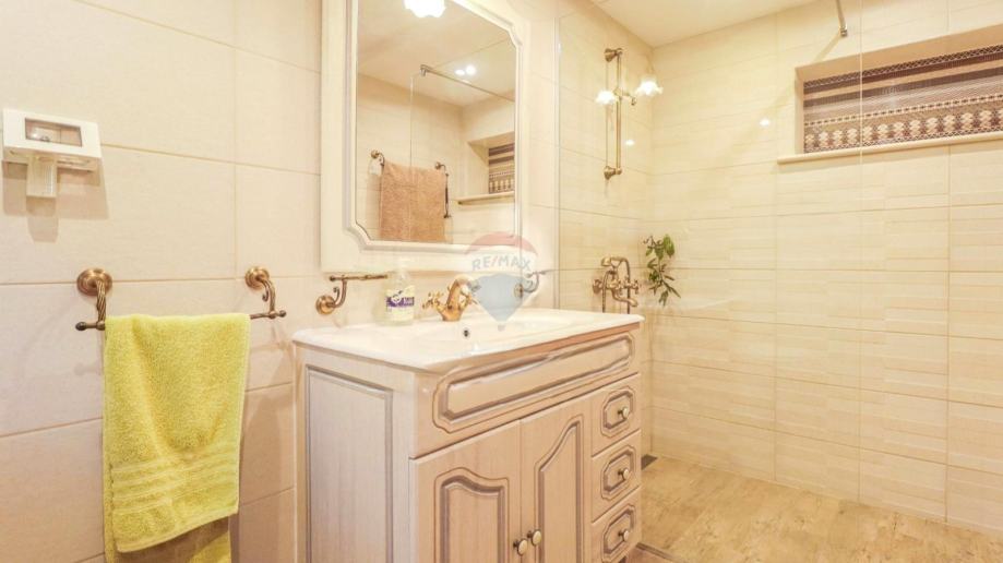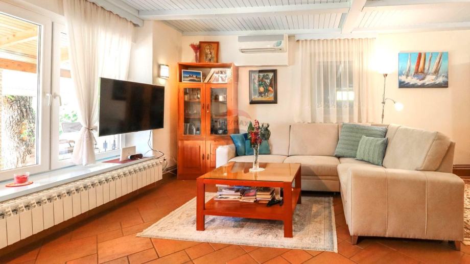 RE/MAX Centar nekretnina izdvaja ovu prekrasnu ladanjsku prizemnu kuću ukupne stambene površine 144 četvorna metra, smještenu u mirnom okruženju, idealnu za obiteljsku harmoniju i uživanje u prirodi. Kuća se sastoji od prostranog dnevnog dijela s blagovaonicom i izlazom u prostrani vrt, tri komforne spavaće sobe, od kojih glavna ima svoju privatnu kupaonicu, te dodatnu kupaonicu koja služi preostalim sobama. Tu su još tehnička soba i vešeraj, kao i alatnica koja pruža dovoljno prostora za pohranu alata potrebnih za održavanje impresivnog vrta.