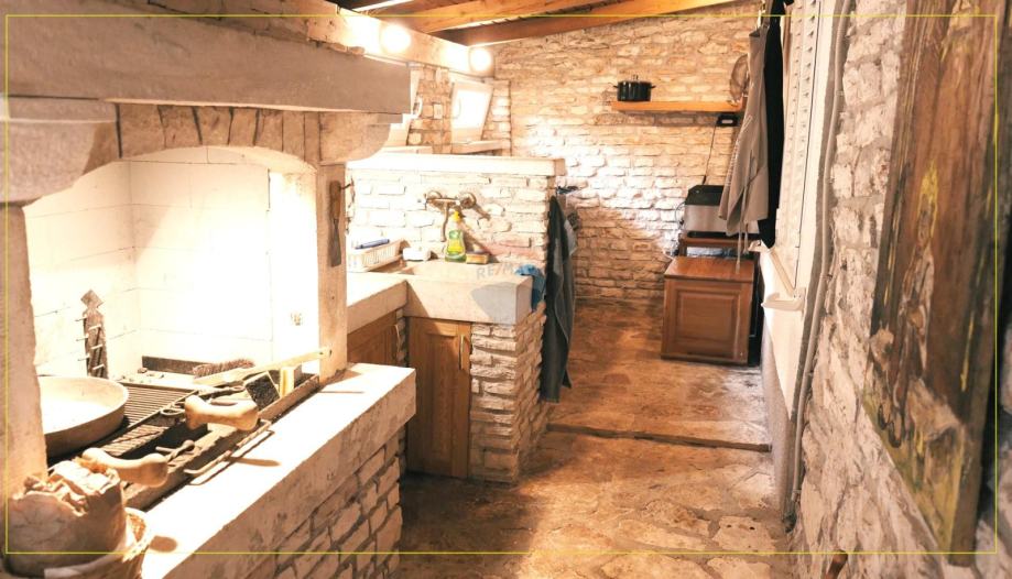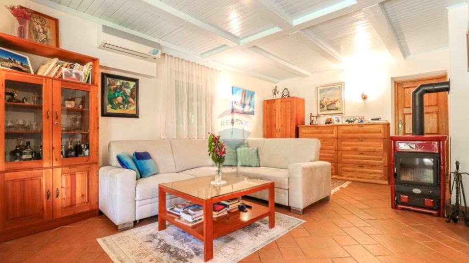 Kuća je uređena u istarskom stilu, s elegantnim detaljima od kamena i drva, stvarajući toplu i ugodnu atmosferu. Grijanje je riješeno putem dizalice topline na struju, dok dnevni boravak krasi kamin, koji dodatno doprinosi ugođaju. Hlađenje je omogućeno klima uređajima.