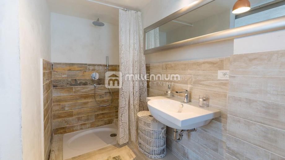 Razvedena je na prizemlje i kat, a sastoji se od tri spavaće sobe s kupaonicama i dnevnim boravkom u prizemlju i još dvije spavaće sobe, kupaonice i dvije lijepe terase na katu.