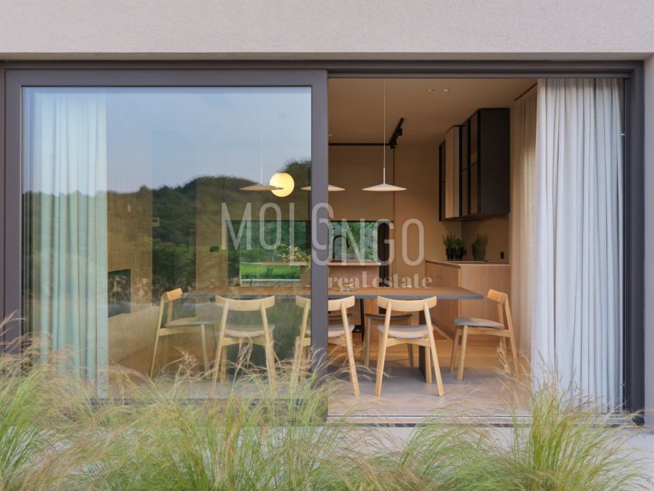 klizne staklene stijene u prizemlju, podno grijanje na vodu s dizalicom topline Mitsubishi, sustav hlađenja, vrata Filomuro,