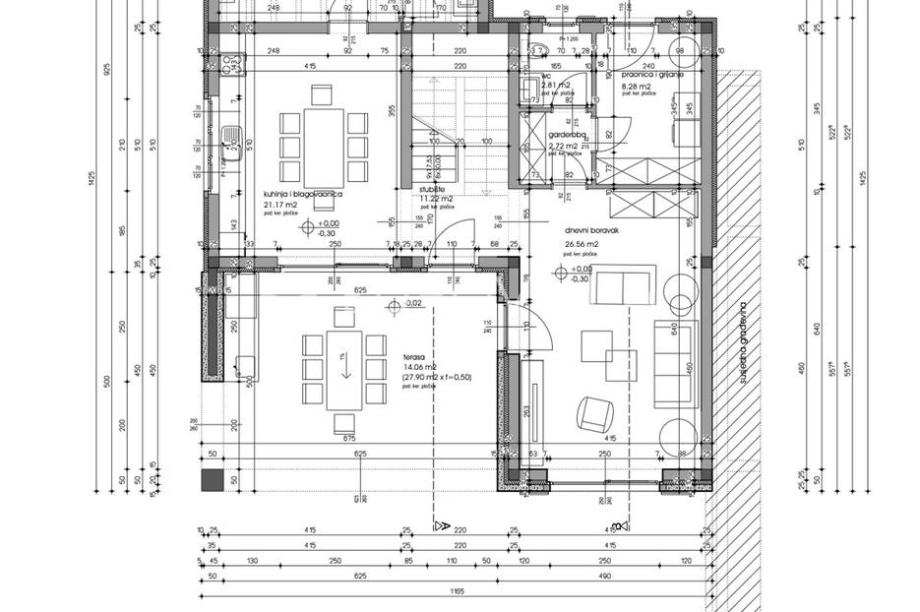 Istria, Marčana - in a quiet settlement of the Municipality of Marčana, 15 km from Pula, there is this traditionally built semi-detached stone house on a plot of 550 m2. The investor wanted to keep the traditional look of the house, so all the windows-sashes will be wooden, in combination with...