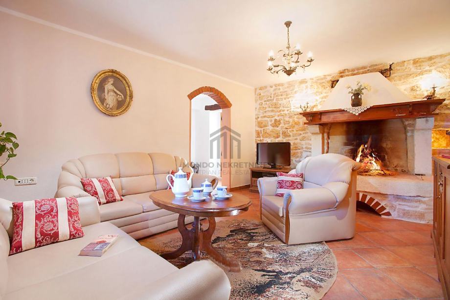 - Prizemlje (65 m2): prostrani dnevni boravak s kaminom, velika kuhinja s blagovaonicom i izlazom na terasu