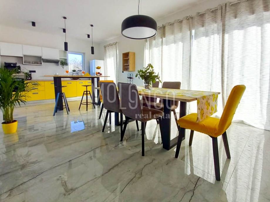 Na prodaju je predivna kuća s bazenom i otvorenim pogledom na prirodu, te djelomičnim pogledom na more. Smještena je na izoliranoj lokaciji, u mirnom naselju nedaleko od Marčane. Kuća se prodaje potpuno namještena i opremljena, spremna za trenutno useljenje.