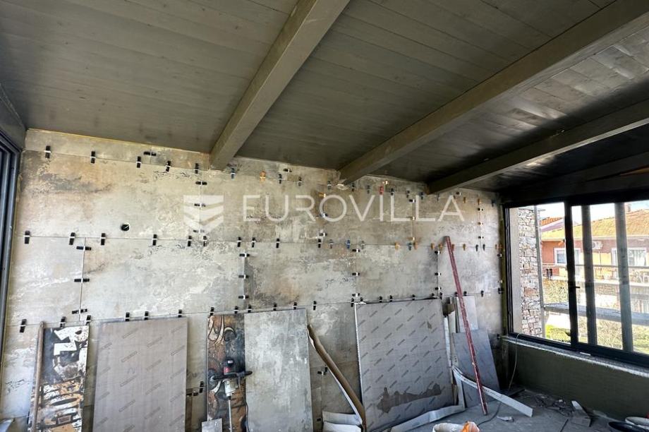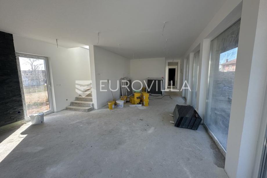 This large and modern semi-detached house is located in Marcana, only 15 minutes from Pula, a beautiful and well-kept place with lots of greenery. With its size of NKP 240 m2, covered with stone, with a high wall, it blends nicely into the environment where family houses with landscaped green areas...