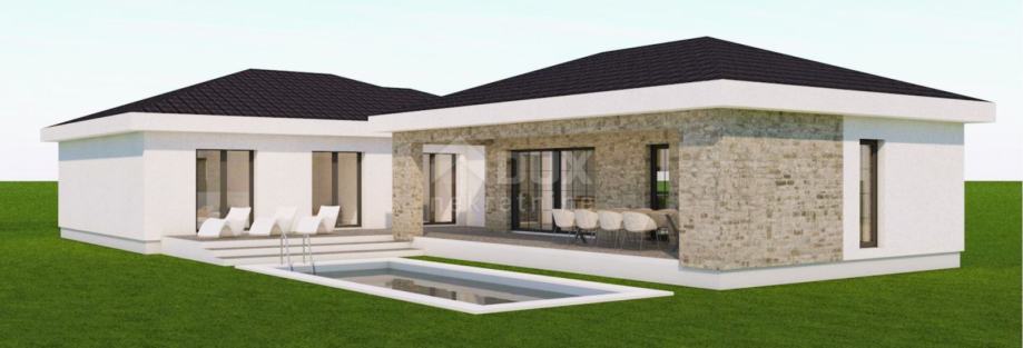 U mirnom okruženju okolice Marčane, dostupno je građevinsko zemljište površine 653 m2 s već izrađenim idejnim projektom. Projekt obuhvaća izgradnju prizemnice od 160 m2 s bazenom. Pristup zemljištu omogućen je s asfaltirane ceste, a struja i voda su odmah dostupni uz samu parcelu.