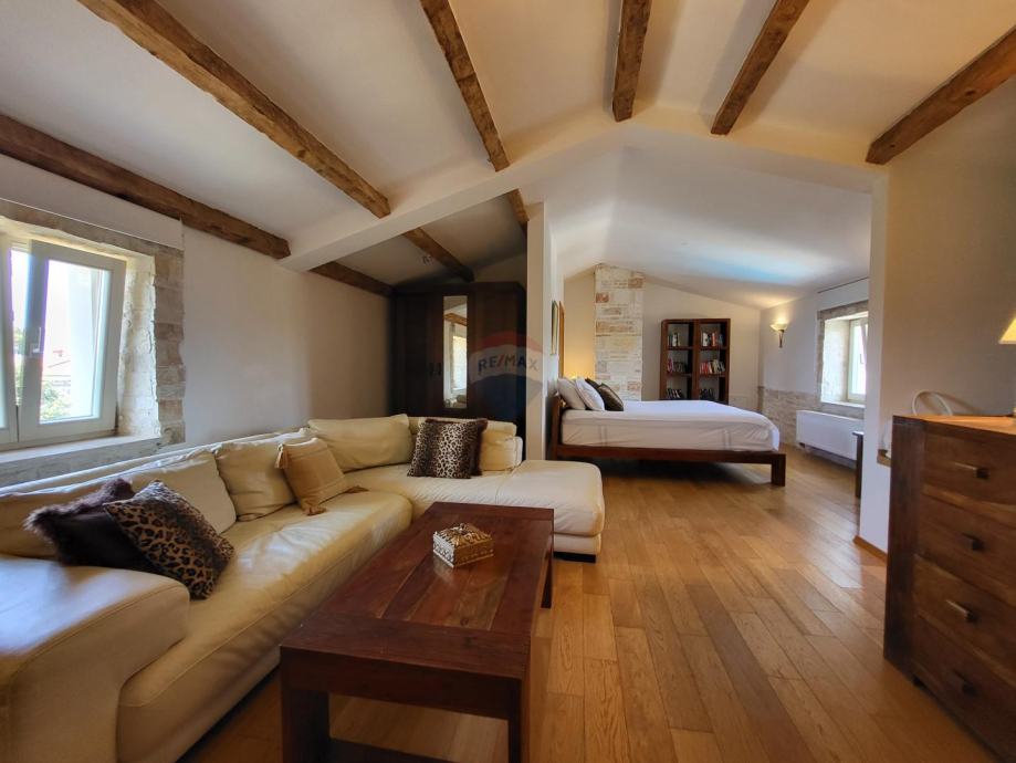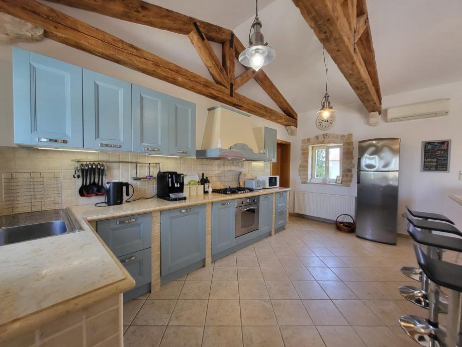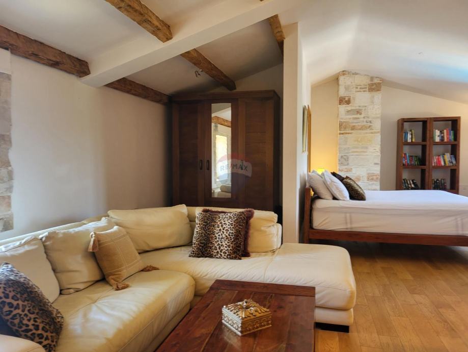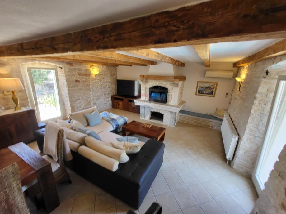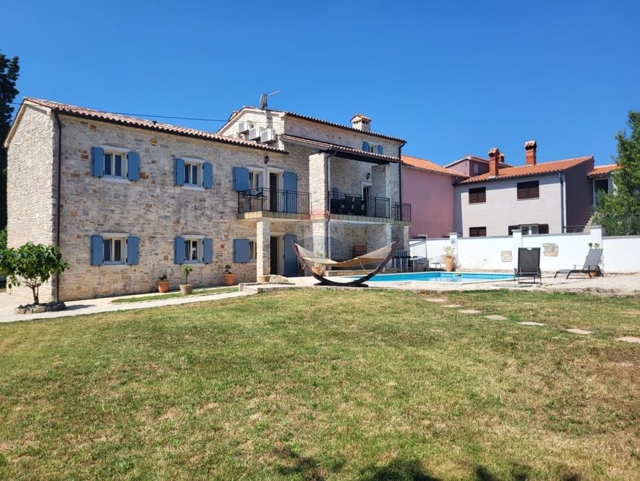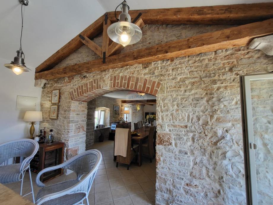 Na prodaju je prekrasna izvorno istarska kamena kuća, potpuno renovirana i preuređena prije nekoliko godina. Kuća se nalazi u manjem istarskom selu, a smještena je na rubu mjesta i to na većoj parceli od oko 1900m2. Tako da je stražnji dio gdje se nalaze bazen, sunčalište, roštilj, terasa i prostor za druženje, potpuno zaklonjen i pruža mir i privatnost. Kuća je izrazito lijepo i kvalitetno obnovljena, pazilo se na detalje kojih je puna. U prizemlju se nalazi predsoblje i 3 spavaće sobe sa kupaonama. Tu je i izlaz na stražnju stranu dvorišta i bazen. Stepenicama se dolazi do prvoga kata na kojem se nalazi veliki dnevni boravak sa funkcionalnim kaminom na drva. Tu je još i velika blagavaona i kuhinja, ostava i kupaona. Na posljednjoj etaži je smještena velika glavna spavaća soba, sa vlastitim open space dnevnim boravkom i kupaonom. U dvorištu je smješten veliki bazen, sunčalište, vrtna kućica, roštilj i jacuzzi.