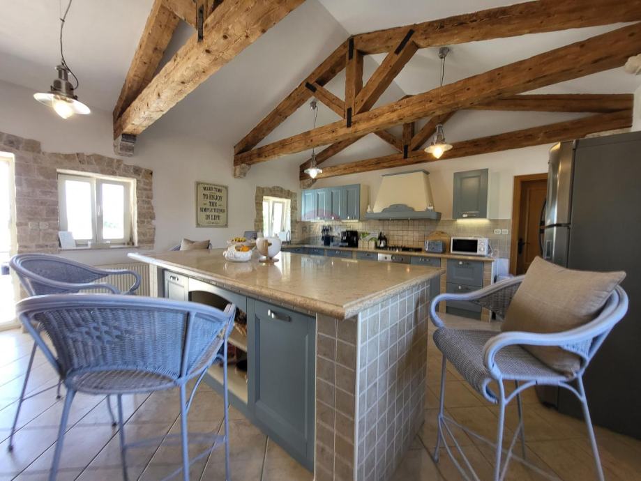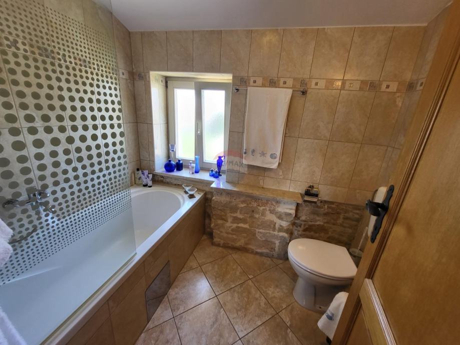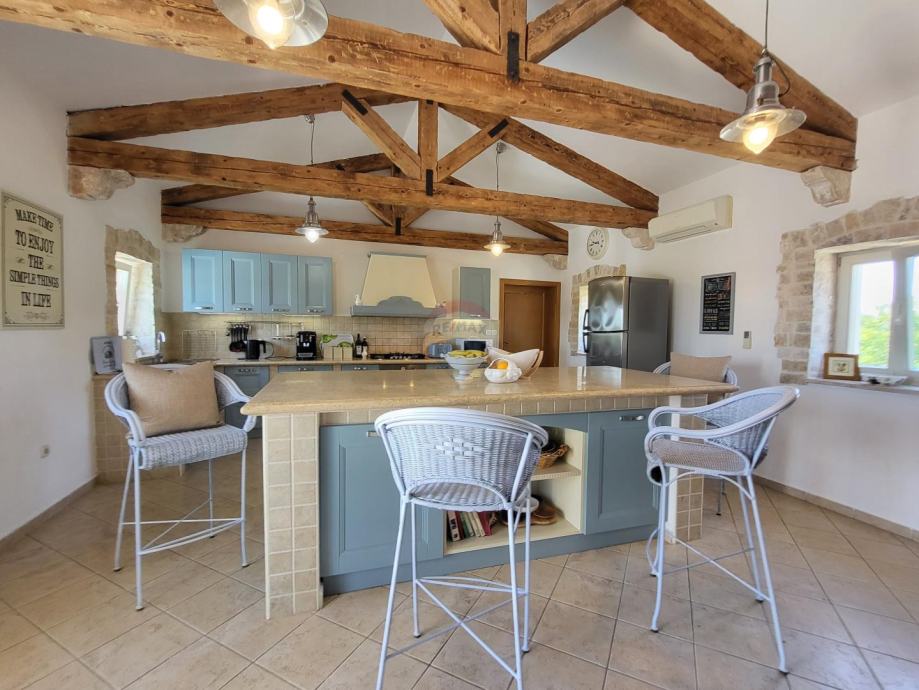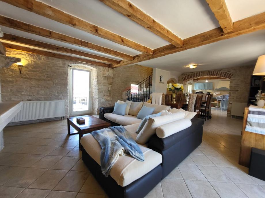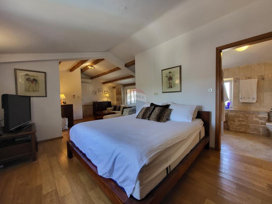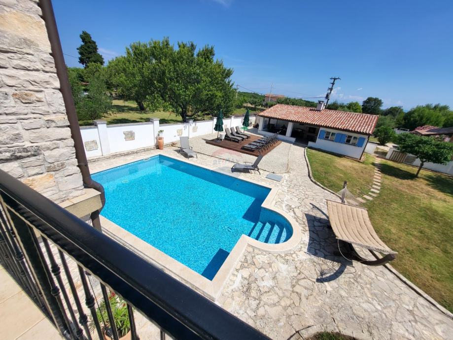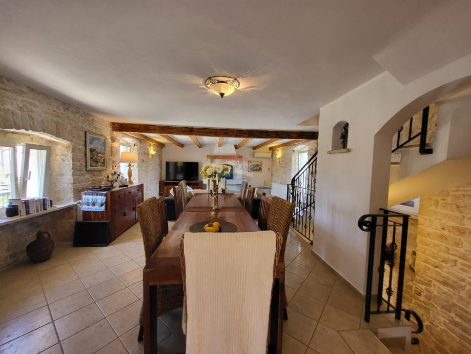 Na prodaju je prekrasna izvorno istarska kamena kuća, potpuno renovirana i preuređena prije nekoliko godina. Kuća se nalazi u manjem istarskom selu, a smještena je na rubu mjesta i to na većoj parceli od oko 1900m2. Tako da je stražnji dio gdje se nalaze bazen, sunčalište, roštilj, terasa i prostor za druženje, potpuno zaklonjen i pruža mir i privatnost. Kuća je izrazito lijepo i kvalitetno obnovljena, pazilo se na detalje kojih je puna. U prizemlju se nalazi predsoblje i 3 spavaće sobe sa kupaonama. Tu je i izlaz na stražnju stranu dvorišta i bazen. Stepenicama se dolazi do prvoga kata na kojem se nalazi veliki dnevni boravak sa funkcionalnim kaminom na drva. Tu je još i velika blagavaona i kuhinja, ostava i kupaona. Na posljednjoj etaži je smještena velika glavna spavaća soba, sa vlastitim open space dnevnim boravkom i kupaonom. U dvorištu je smješten veliki bazen, sunčalište, vrtna kućica, roštilj i jacuzzi.