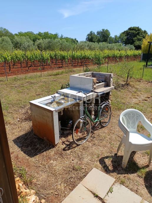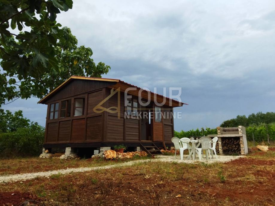 Na terenu se nalazi simpatična montažna drvena kućica od 32 m2.