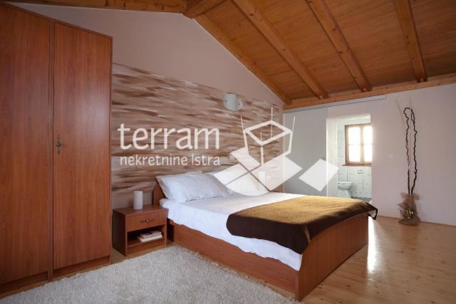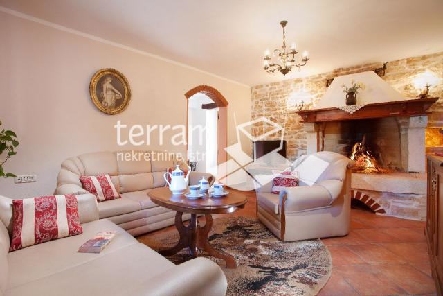 Istra, Marčana prodaje se ova lijepa rustikalna kuća, površine 180 m2 sa okućnicom. Kuća se sastoji od prizemlja gdje je smješteno kupatilo, dnevni boravak s kaminom, ostava i velika prostrana kuhinja (65m2) iz koje se izlazi u veliki prostrani vrt (90m2) sa ljetnom kuhinjom (30m2). Na katu se nalaze tri spavaće sobe sa svojim kupatilima (80m2) i u potkrovlju velika prostrana soba (35m2). Ljetna kuhinja je potpuno opremljena za ugodno druženje.