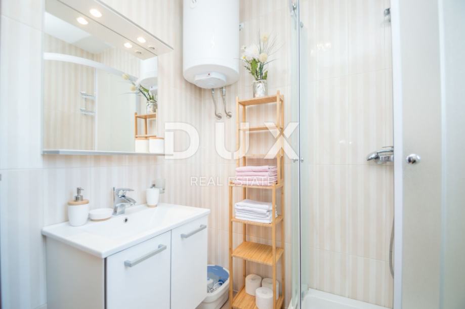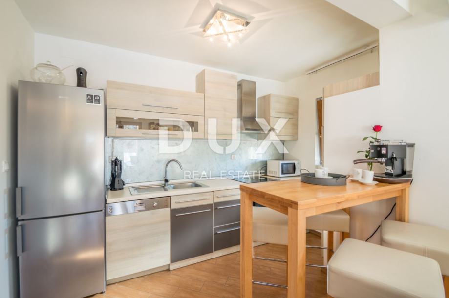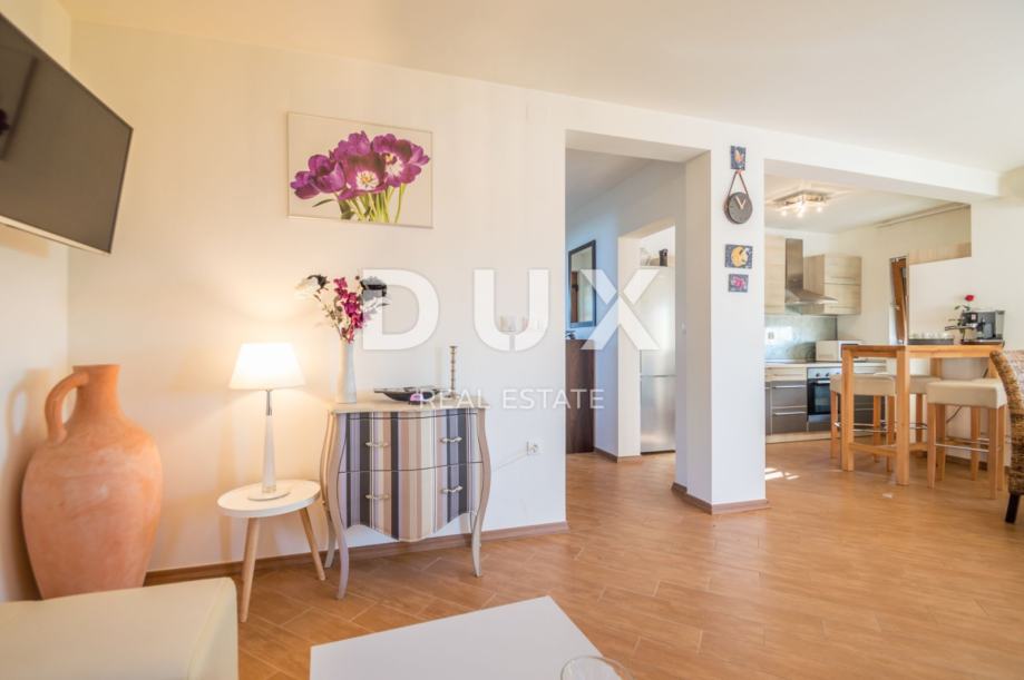Na potpuno ograđenoj okućnici od 398 m2 smjestio se već spomenuti grijani bazen koji je odlična stvar za produživanje turističke sezone ukoliko budući vlasnici budu željeli nastaviti vrlo uhodan posao iznajmljivanja ove odlične nekretnine.