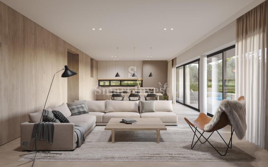 Kuća se sastoji od 4 spavaće sobe i 4 kupaonice (3 na 1. katu, 1 u prizemlju ), dnevnog boravka s kuhinjom i blagovaonicom u prizemlju, 2 ostave, vešeraja, WC-a i vanjskog tuša na okućnici bazena s vanjske strane.
