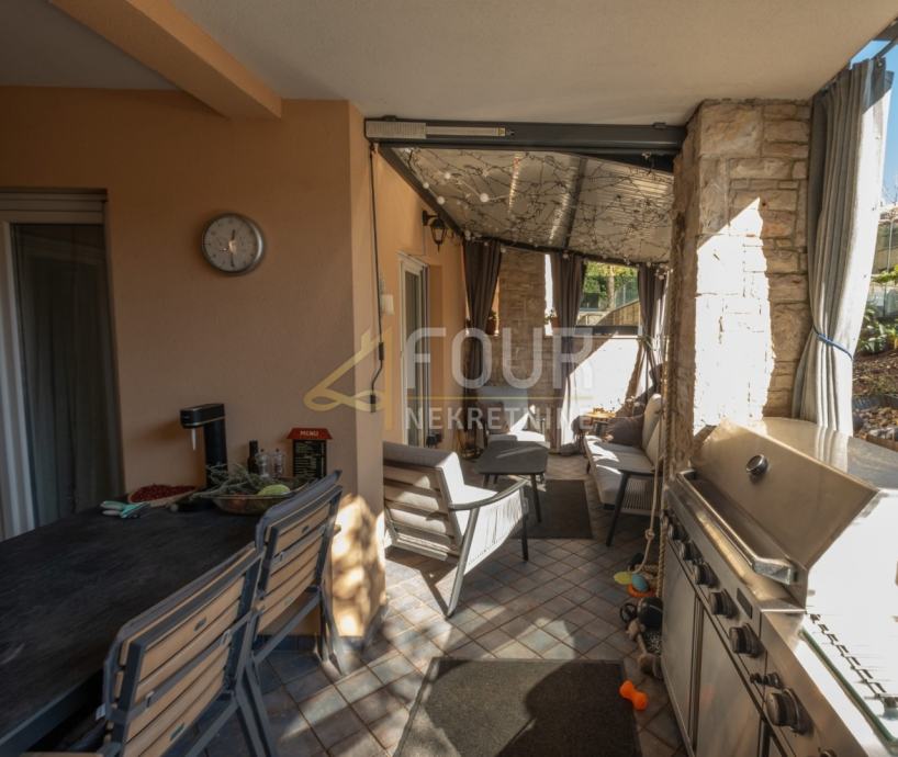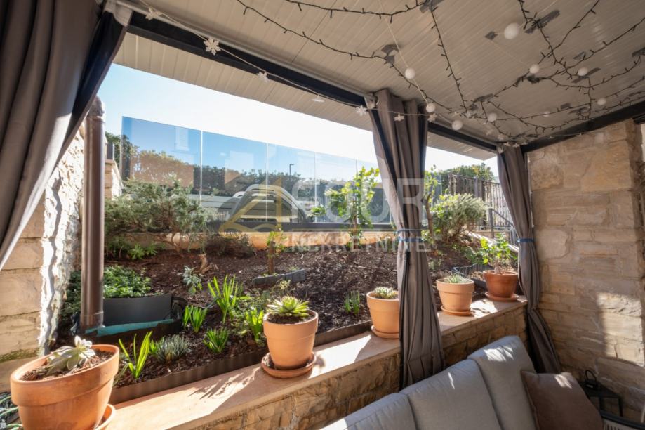 Posebnu vrijednost ovoj nekretnini daje velika terasa odnosno dio okućnice površine približno 50 m2 koji se koristi uz stan, idealan za boravak na otvorenom. Zgrada stanarima nudi i zajednički bazen na korištenje, što dodatno doprinosi kvaliteti boravka i atraktivnosti lokacije. Stanu pripada i vanjsko parkirno mjesto.