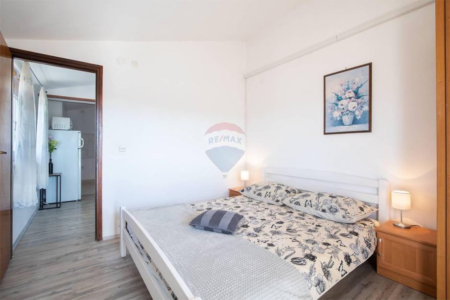 Na parceli od 429m2 nalaze se dvije kuće i sveukupno imaju 7 apartmana za iznajmljivanje i jedan veliki stan u kojem vlasnici žive.