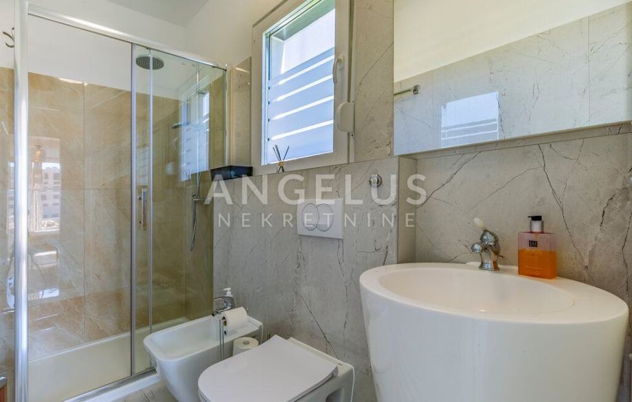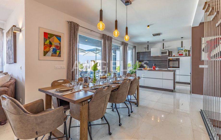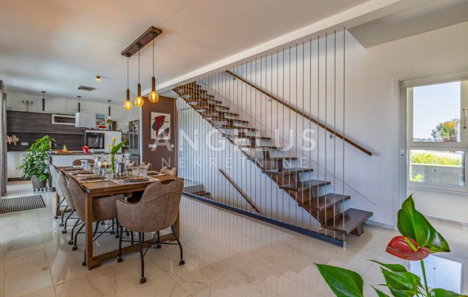 This villa in Medulin stands out with its elegant and contemporary design, with a carefully thought-out layout of rooms that provide maximum functionality and aesthetics. Large windows allow for plenty of natural light and create a feeling of openness, while at the same time providing a panoramic view of the blue sea, peaceful nature and picturesque sunset landscapes.