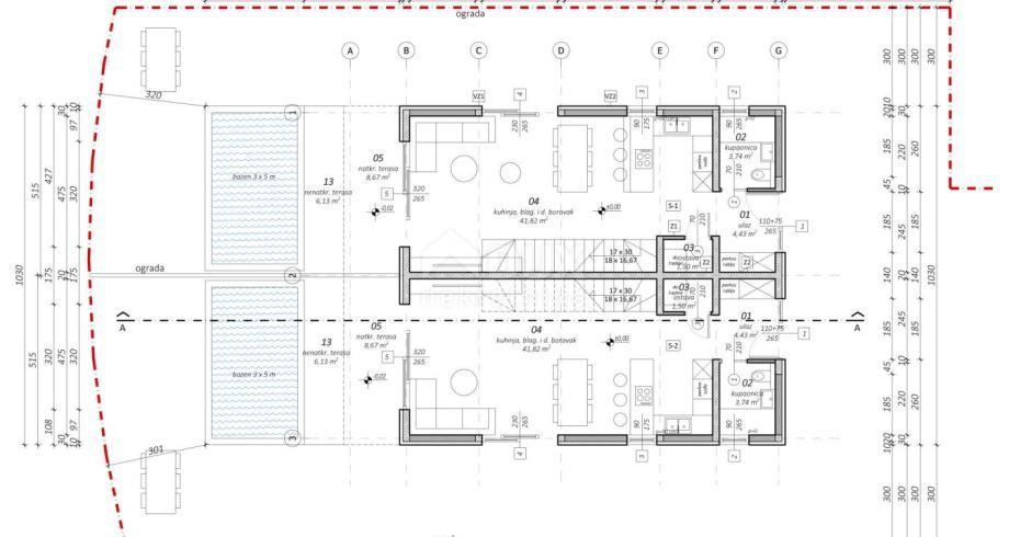 Pored bazena nalazit će se i prostor dovoljno velik za potencijalnu ljetnu kuhinju ili roštilj sa sjedećim mjestima.