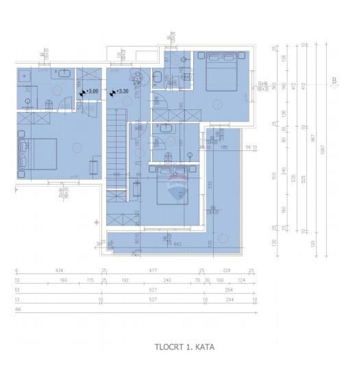 1.kata : tri spavaće sobe, te svaka sa kupaonicom, garderobe i loggie.