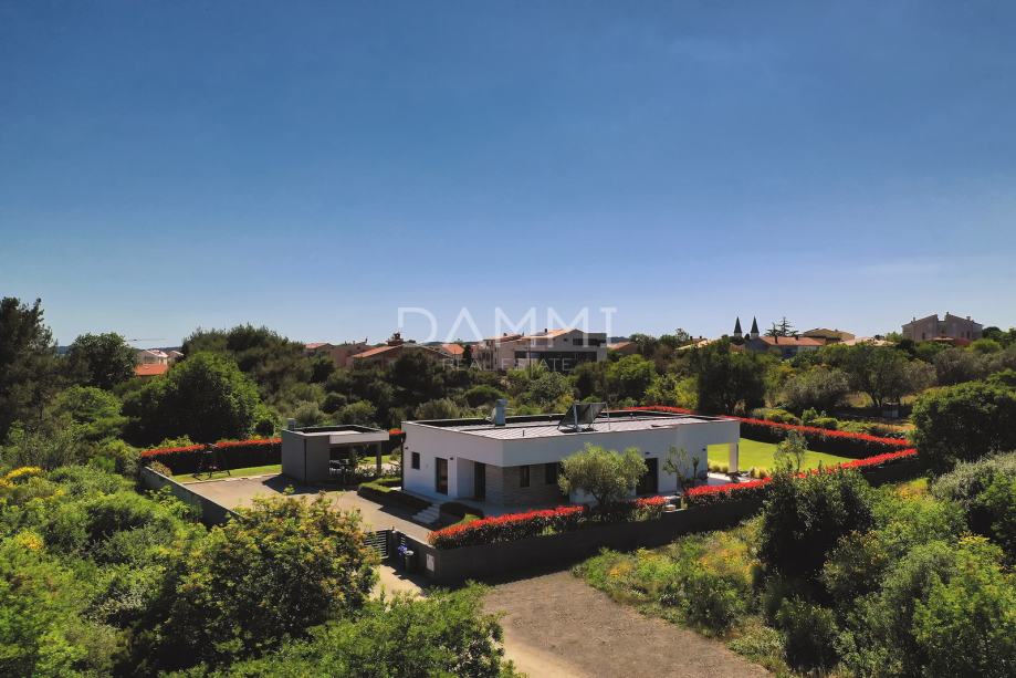 Ova luksuzna prizemna vila izgrađena je 2017. godine i projektirana je prema principima staroindijske Vastu arhitekture, što osigurava sklad s prirodom i ugodan protok energije kroz cijeli prostor. Vila se prostire na ukupno 1760 m2 ograđenog zemljišta, okružena netaknutom mediteranskom prirodom, velikim maslinama i zelenilom – pružajući potpunu privatnost, mir i relaksaciju.