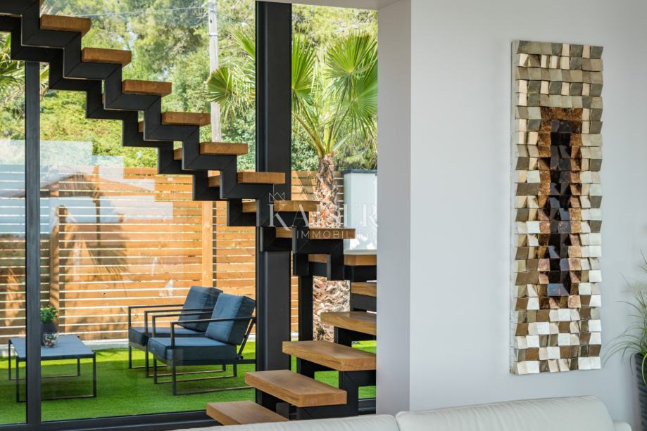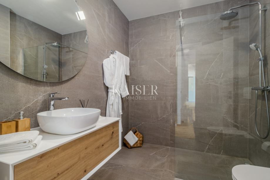 Ova impresivna luksuzna dvojna vila predstavlja pravu rijetkost na tržištu – spoj vrhunske arhitekture, suvremene tehnologije, svega nekoliko minuta od mora i svih potrebnih sadržaja. Kaiser Immobilien Vam predstavlja nekretninu ukupne površine 400 m² raspoređenih na tri etaže, s grijanim infinity bazenom i ekskluzivnom wellness zonom, projektiranu i izvedenu prema najvišim luksuznim standardima.