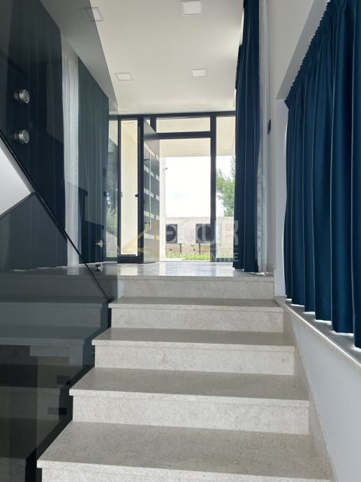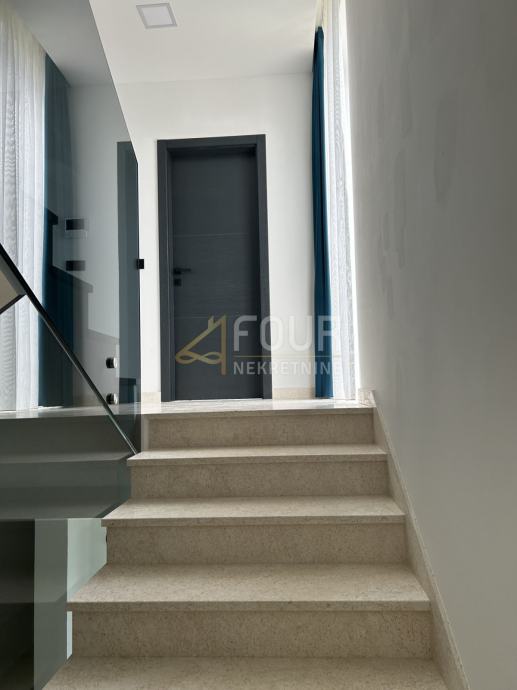 Nekretnina je samodostatna - ima svoju elektranu, voda se iskorištava za zalijevanje vrta (kišnica). Kuća ima panoramski lift koji ide na sve etaže. Na okućnici se nalazi grijani bazen i tri parkirna mjesta, dva će biti priključeni za aute na struju. Materijali su visokokvalitetni, kvalitetna stolarija, pločice i sve ostalo što će biti ugrađeno je najskuplje na tržištu.