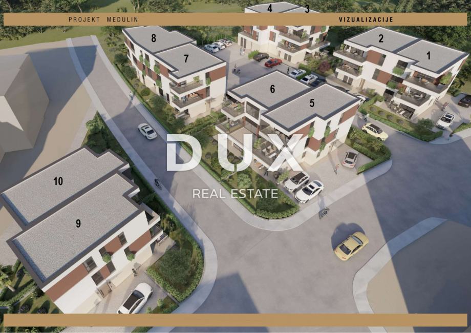 U tijeku je završna faza izgradnje deset stambenih zgrada sa po tri stana u svakoj zgradi, a među kojima je zgrada u kojoj se nalazi stan u prizemlju koji se sastoji od hodnika s garderobom, kupaone, dvije spavaće sobe te kuhinje s blagovaonom i dnevnim boravkom iz kojeg se izlazi na natkrivenu terasu.