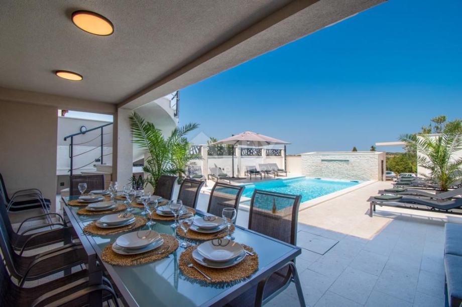 Kuća se sastoji od luksuzno uređenog dvoetažnog stana te 3 apartmana.
