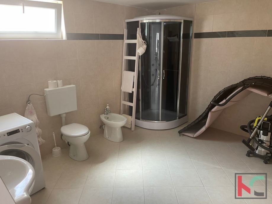 U podrumskom dijelu nalazi se velika konoba sa zidanim kaminom i velikim blagovaonskim stolom, velika kupaonica te dvije dodatne prostorije stoga postoji mogućnost još jednog apartmana ili pak drugi sadržaj poput vinskog podruma, teretane i sl.