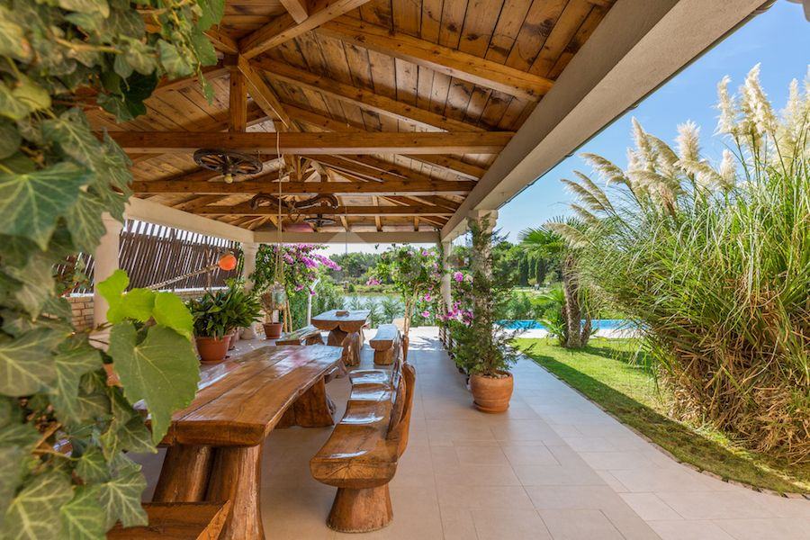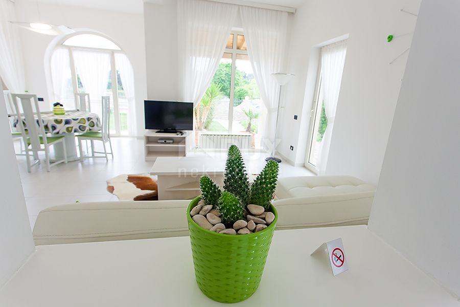 Ova prekrasna vila smještena je uz samo more i udaljena svega 500 metara od centra Medulina i svega par minuta hoda od najpoznatije medulinske plaže Bijece. Sastoji se od osam jedinstvenih apartmana i ima prostranu uređenu okućnicu od 3000m2 na kojoj su se smjestila dva vanjska bazena, sunčalište za goste apartmana, natkriveni prostor za sjedenje i druženje, predivne palme, fontana i klupice za uživanje uz čašu istarskog vina na toplim ljetnim večerima. Vila ima na raspolaganju i svoj privatan parking.