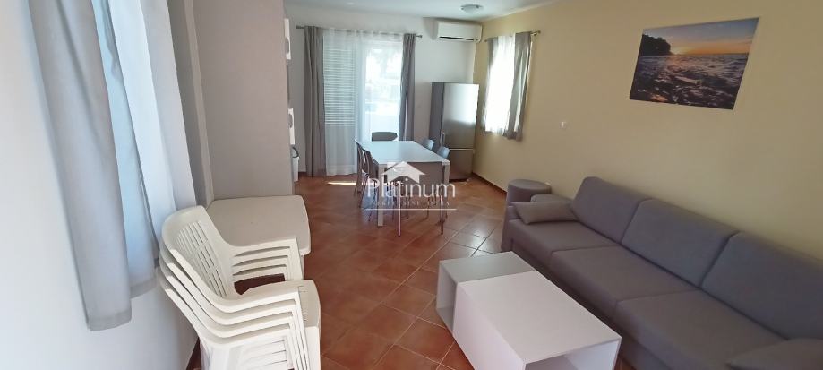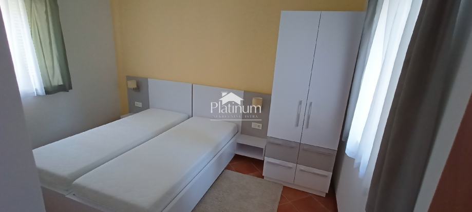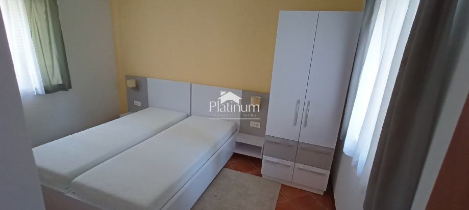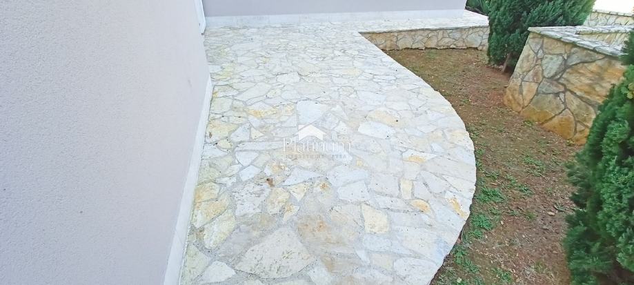 U mirnom dijelu Medulina udaljenom od gužvi,a svega 240m od mora nalazi se ova samostojeća kuća koja se sastoji u donjem dijelu od stana s posebnim ulazom. Stan se sastoji od dnevnog boravka s kuhinjom i blagovaonom, dvije spavaće sobe, hodnika, kupatila i velike nenatkrivene terase na koju se izlazi iz dnevnog boravka. Oko kuće je i mala okućnica i dva parkirna mjesta.