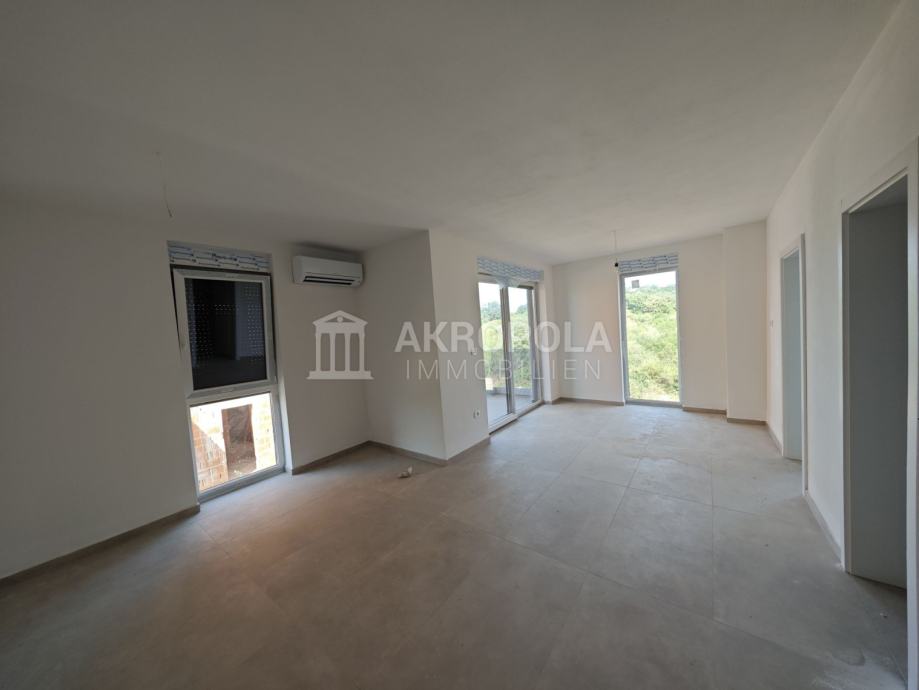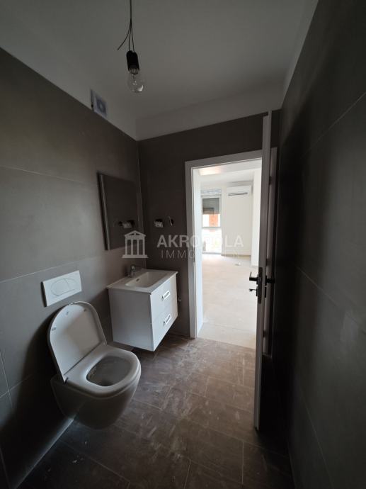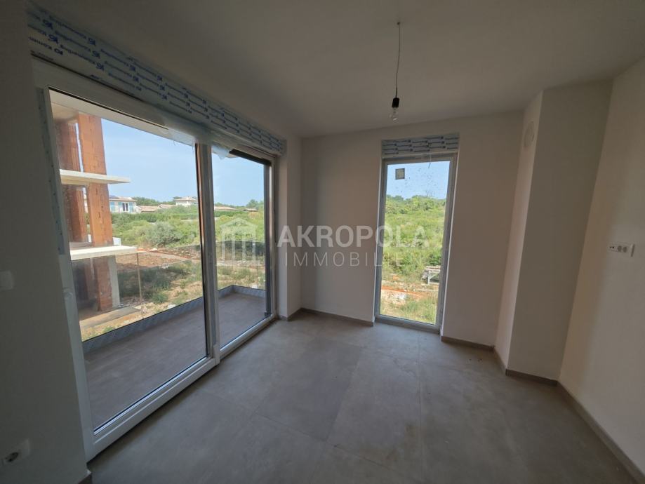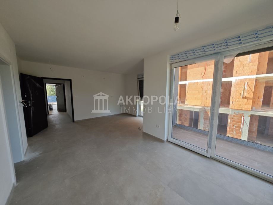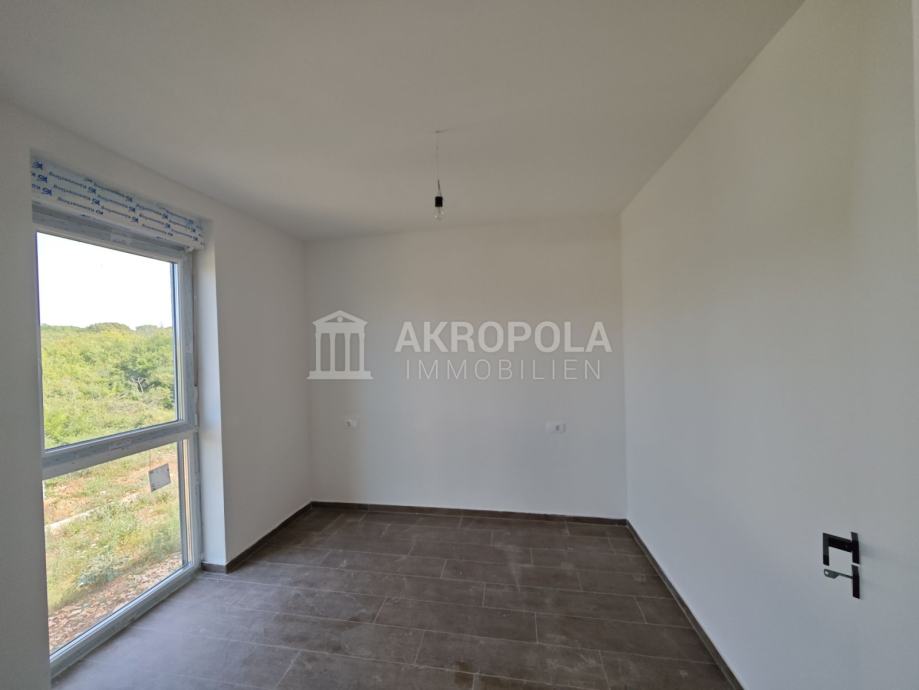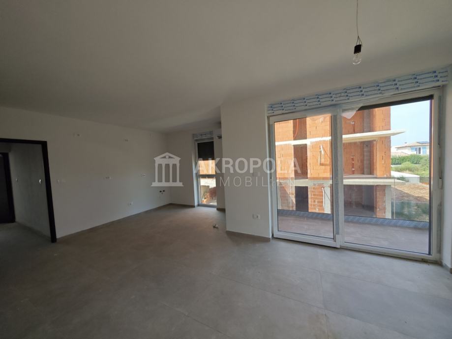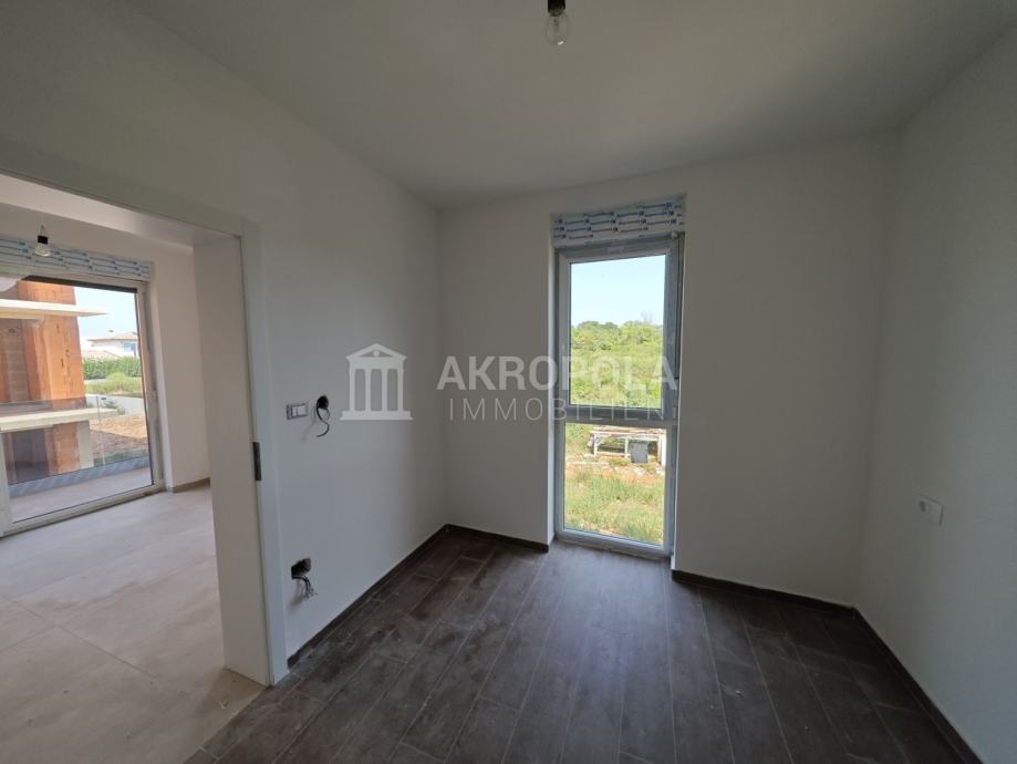Medulin, Stan novogradnja 1.kat koje se nalazi stambenoj zgradi sa 5 stanova izgrađena u skladu sa novim standardima vrhunske kvalitete gradnje i modernog dizajna. Stan se sastoji od jedne spavaće sobe, velikog dnevnog boravka sa kuhinjom i blagovaonicom, kupaonica i natkrivena terasa. Stan ima pripadajuće parkirno mjesto. Stan je ukupne kvadrature 47,22m2. Također po želji moguće je kupiti i spremište u prizemlju zgrade. Nalazi se 1000 m od centra Medulina, 300m od mora i prekrasnih plaža na mirnoj lokaciji nedaleko od svih sadržaja.
