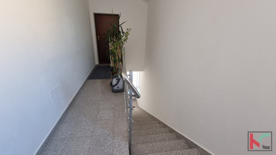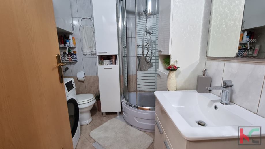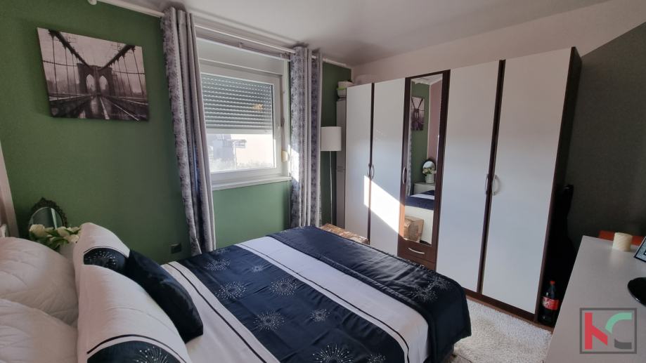 Stan je sunčan, odličnog tlocrtnog rasporeda, a sastoji se od ulaznog predsoblja, kuhinje s blagavaonicom, dnevnog boravka sa izlazom na prostranu terasu , dvije spavaće sobe, kupaonice, te parkirnog mjesta ispred zgrade.