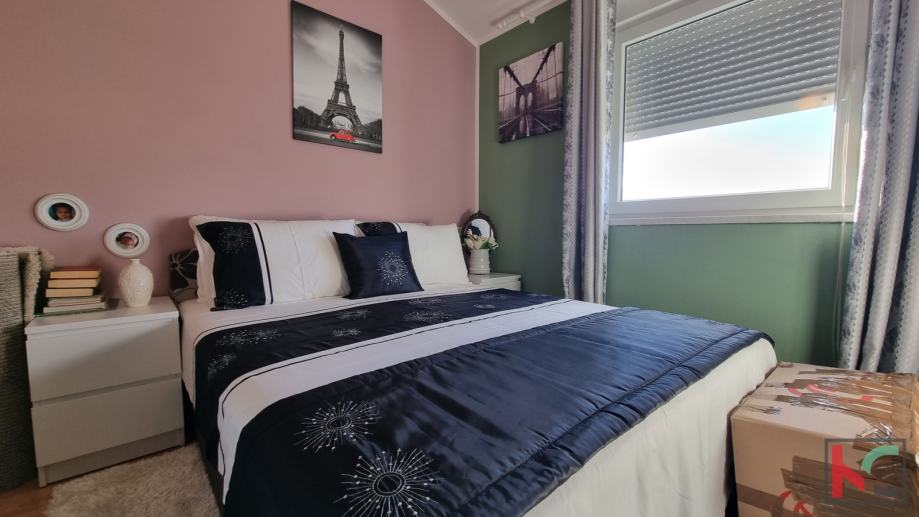 Stan je opremljen klimatskom jedinicom, kvalitetnom keramikom i laminatom, pvc stolarijom, kompletno namješten, te se kao takav i prodaje.