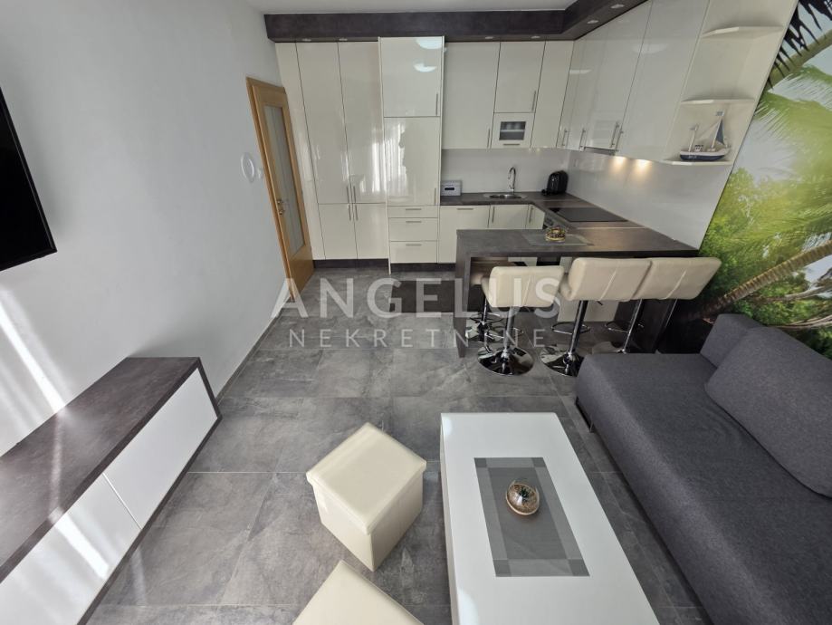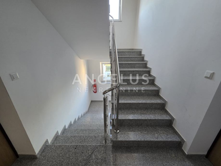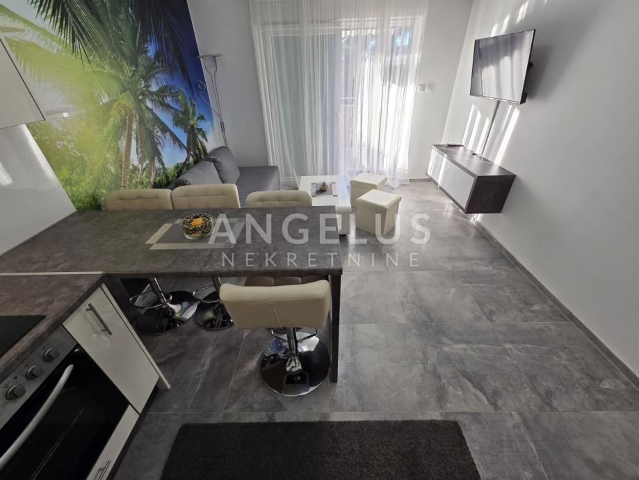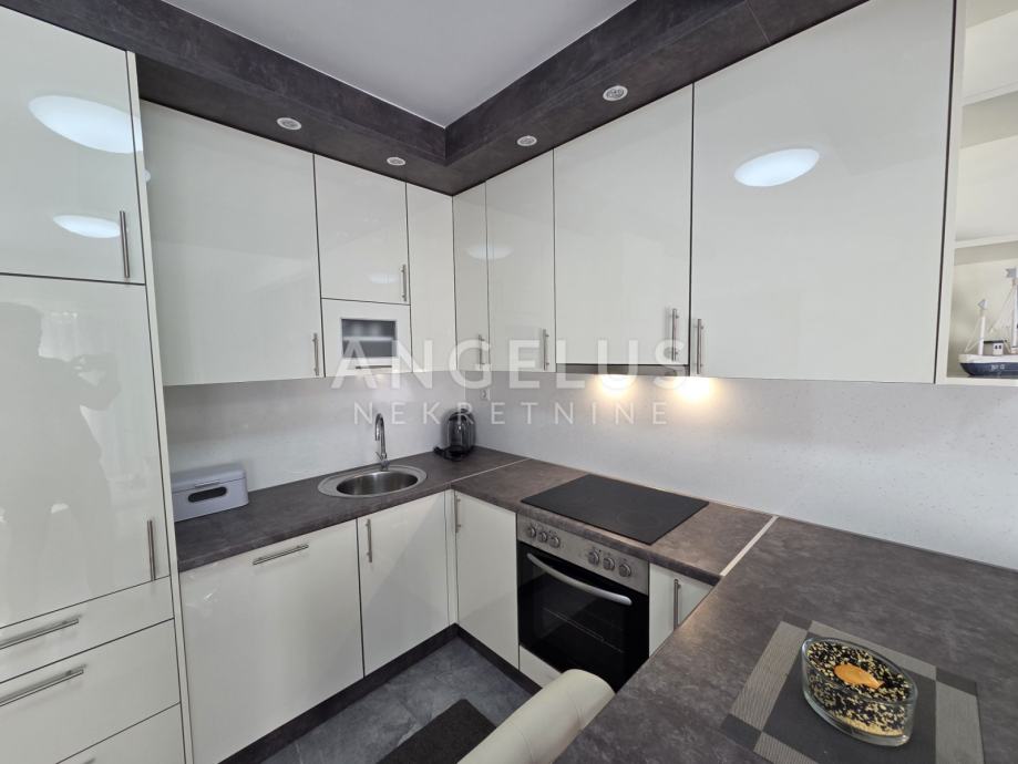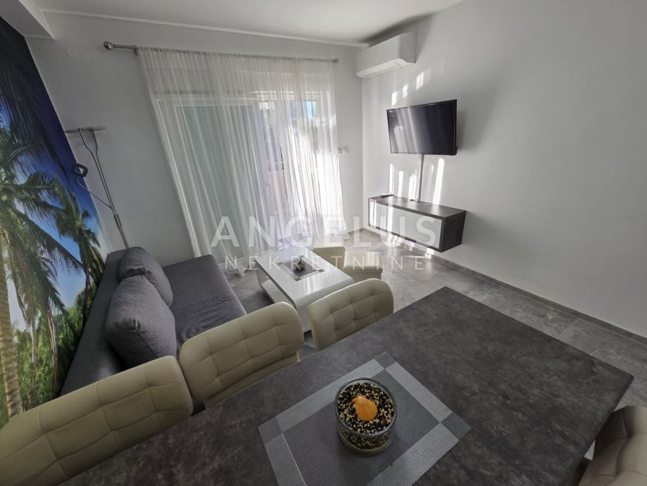U prvom katu novije novogradnje, okupan popodnevnim suncem i morskim povjetarcem koji dolazi s obale, ovaj dvosobni stan orijentiran je na zapadnu stranu.