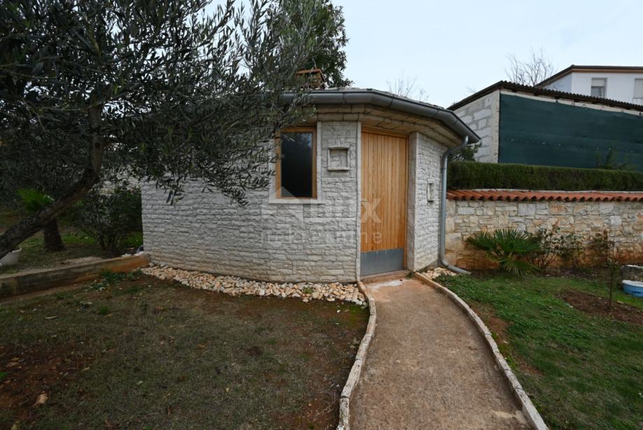 Apartmanska kuća ima dva pristupa od kuda se može pristupiti kući odnosno velikoj i prostranoj okućnici gdje se smjestio ljetnikovac, istarski kažun s zidanim kaminom za druženja i najbolja jela.