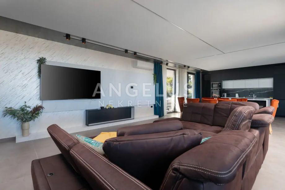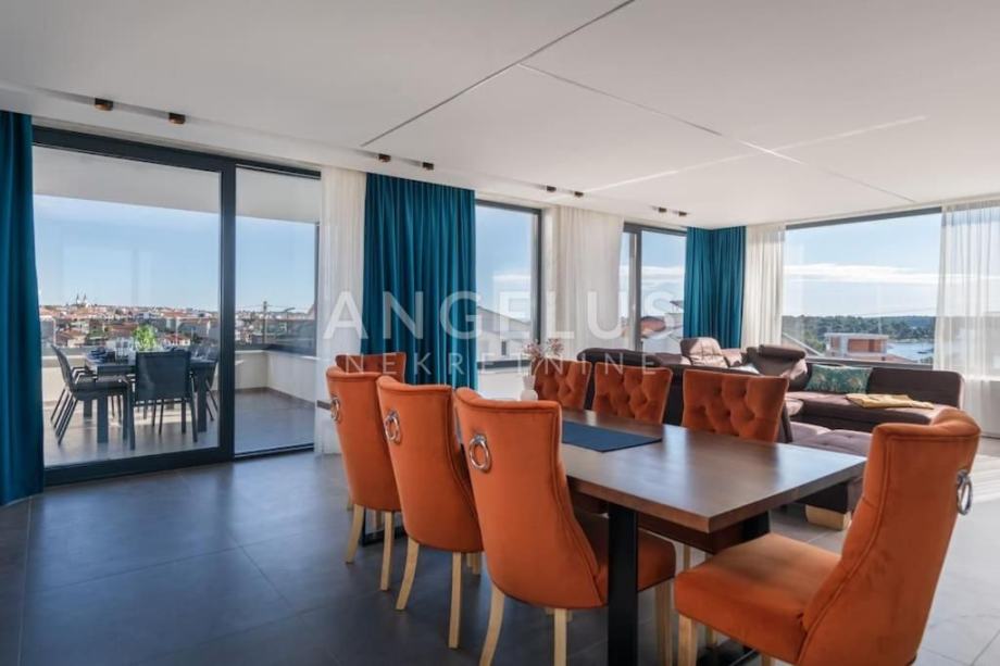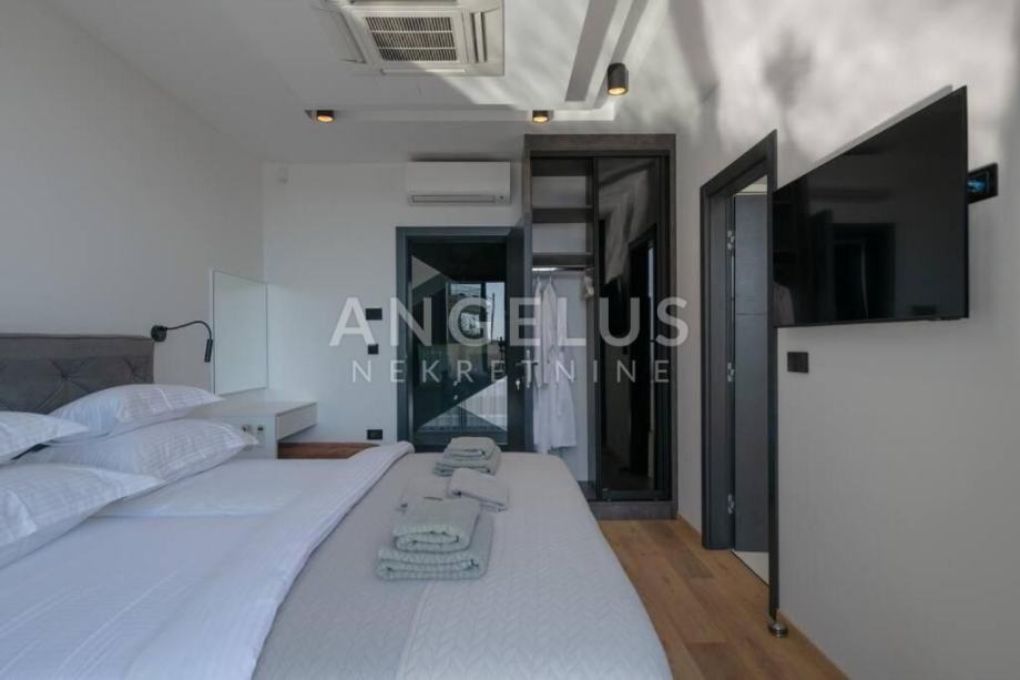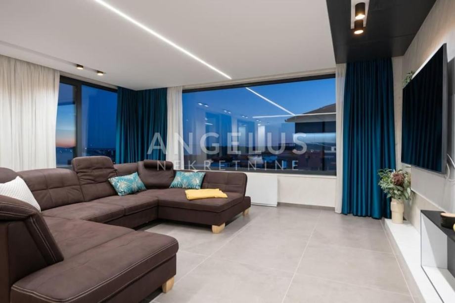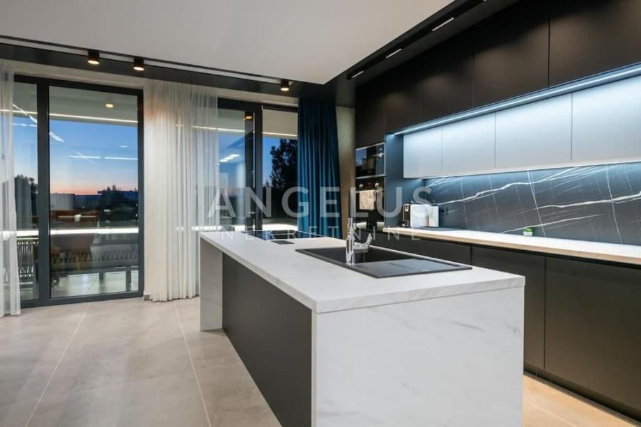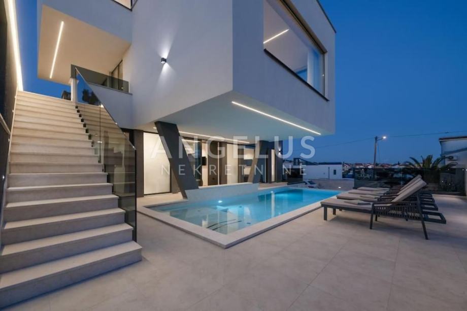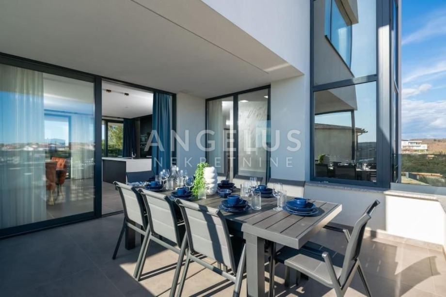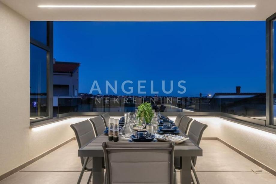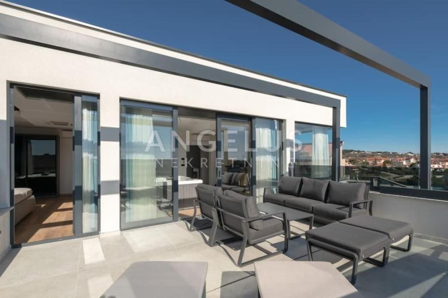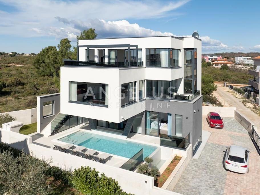 Angelus Nekretnine d.o.o. nude Vam ovu luksuznu arhitektonsku vilu s pogledom na more, privatnim hidromasažnim bazenom, jacuzzijem, saunom i teretanom na samo 230 m od mora i kilometarskih plaža Medulin Rivijere.