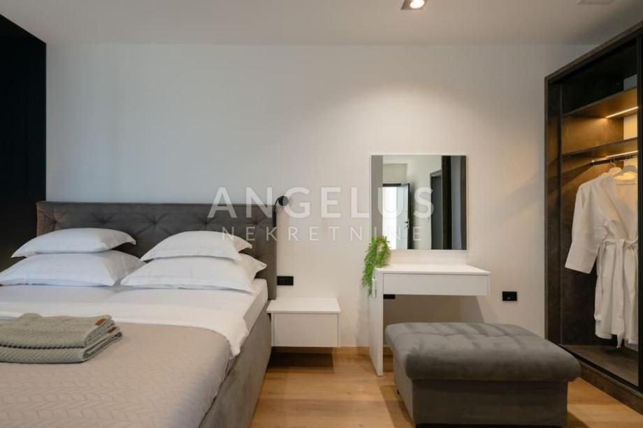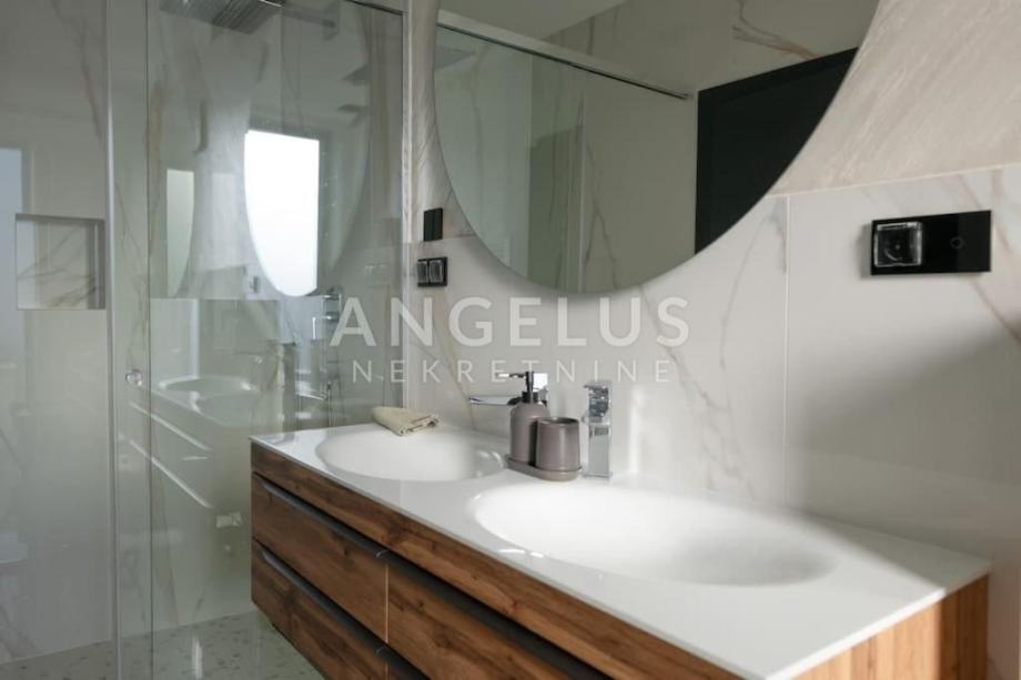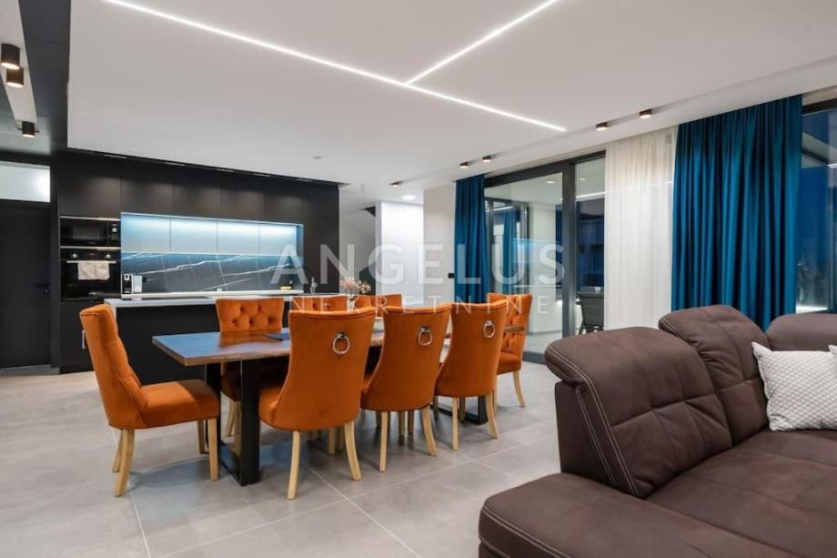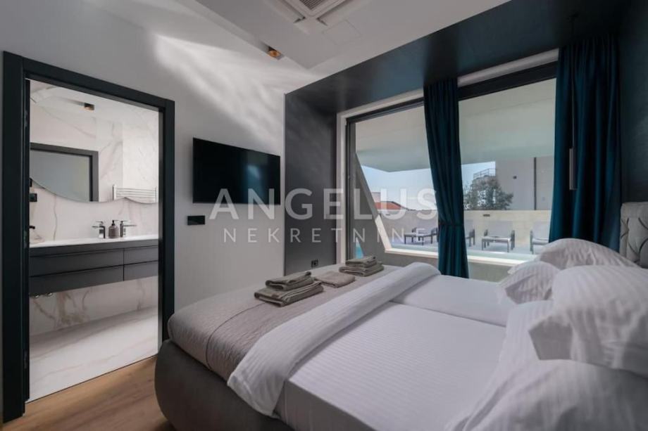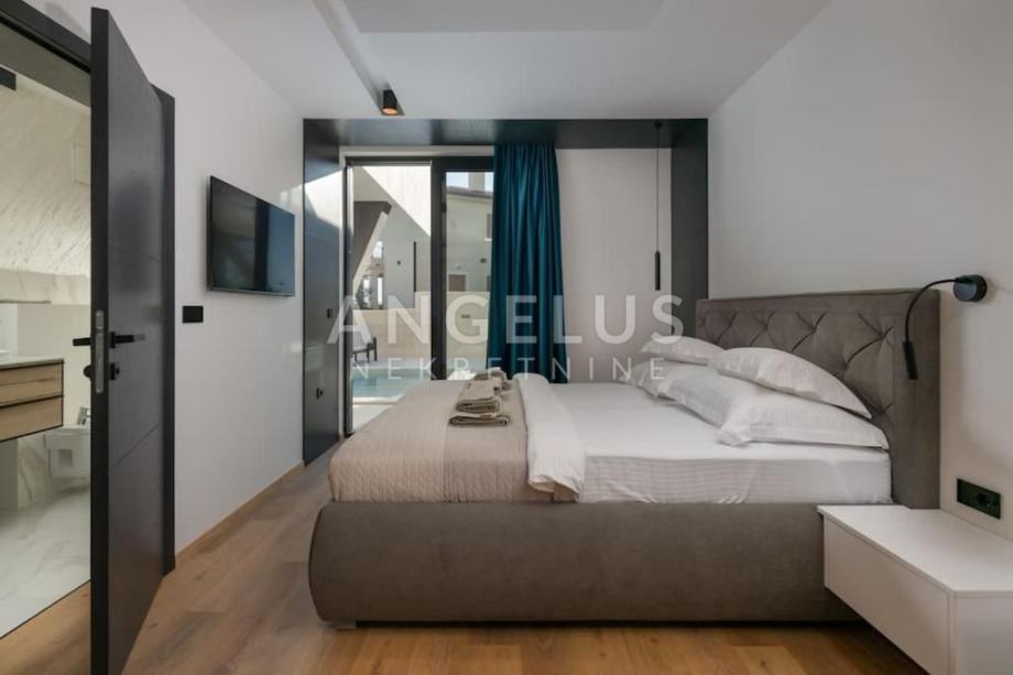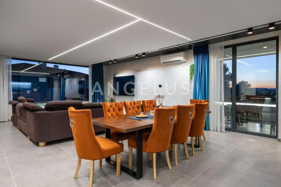 OPIS: Luksuzna vila s privatnim hidromasažnim bazenom (30 m²), saunom, jacuzzijem i teretanom predstavlja modernu dizajnersku vilu. Smještena u Medulinu, Istra, nalazi se samo 230 metara od mora i najbliže plaže. Medulin je popularna destinacija u Istri koja nudi prekrasne plaže, razne animacije za djecu te širok izbor restorana s ukusnim delicijama. Vila se prostire na zemljištu od 600 m², dok unutrašnjost vile zauzima impresivnih 400 m² stambenog prostora. Sastoji se od tri etaže, pružajući luksuzan smještaj za vlasnike i njihove goste, uključujući ukupno četiri spavaće sobe, četiri privatna kupatila i dva gostinjska WC-a.