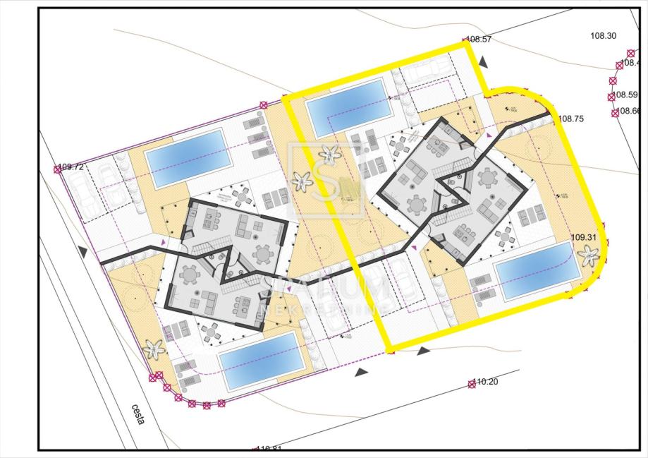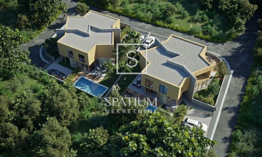 ISTRA, u ponudu smo dobili novu modernu kuću koja je u fazi gradnje na dvije etaže. Ova dvojna kuća dio je kompleksa koja se nalazi u malom Istarskom selu u samoj netaknutoj prirodi. Kuća ima 116 četvornih metara, u prizemlju sadrži stubište, hodnik, kuhinju i blagovaonu, toalet i dnevni boravak iz kojeg se dolazi na natkrivenu terasu uz koju se proteže sunčalište. Na katu su tri spavaće sobe, dvije kupaone, spremište i balkon 7,6 m2. Na okućnici od 284 m2 je vanjski bazen te pomno uređen okoliš i dva parkirna mjesta. Mir i tišina garantiraju privatnost u svakom smislu. Ova nekretnina u potpunosti odražava suvremenu arhitekturu i bit će idealan dom vrlo modernog dizajna. Rok završetka radova će biti kroz godinu dana.