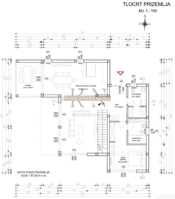 Prizemlje je osmišljeno kao prostran i svijetao dnevni dio, idealan za obiteljski život i druženja: