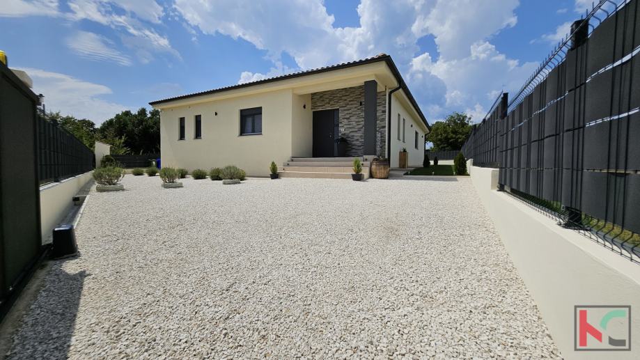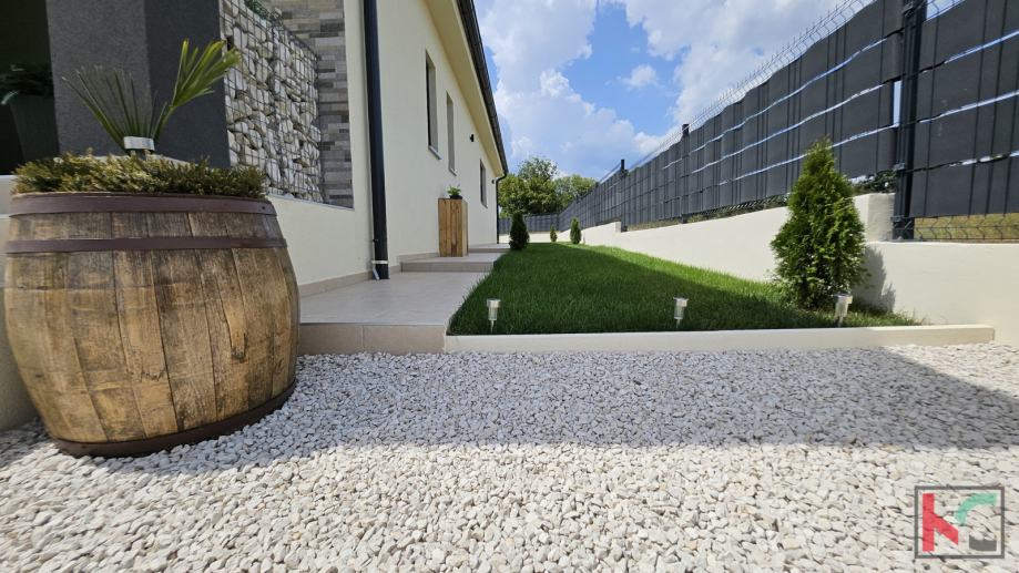 Dojam ove lijepe prizemnice upotpunjuje veliki bazen sa slapom i sunčalištem koji je okružen zelenilom 675m2 okućnice sa sustavom navodnjavanja.