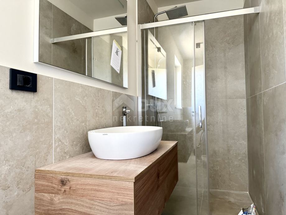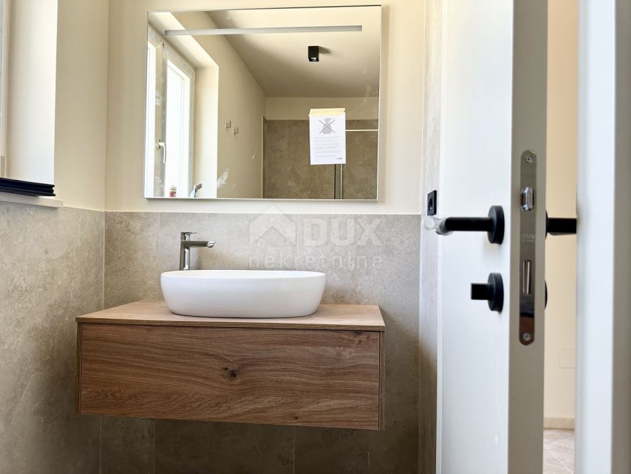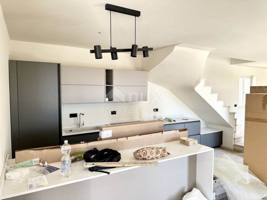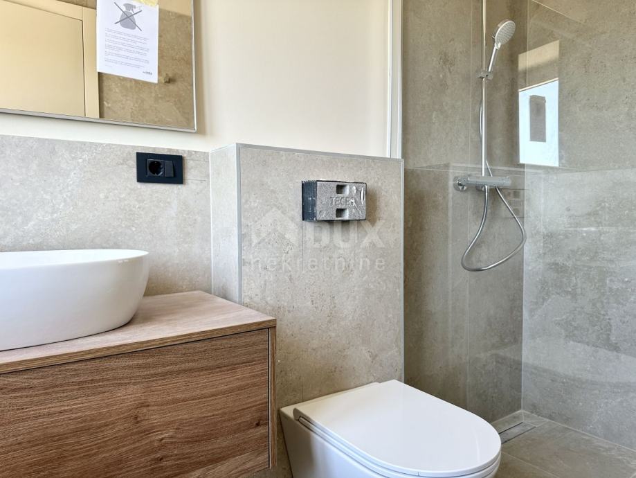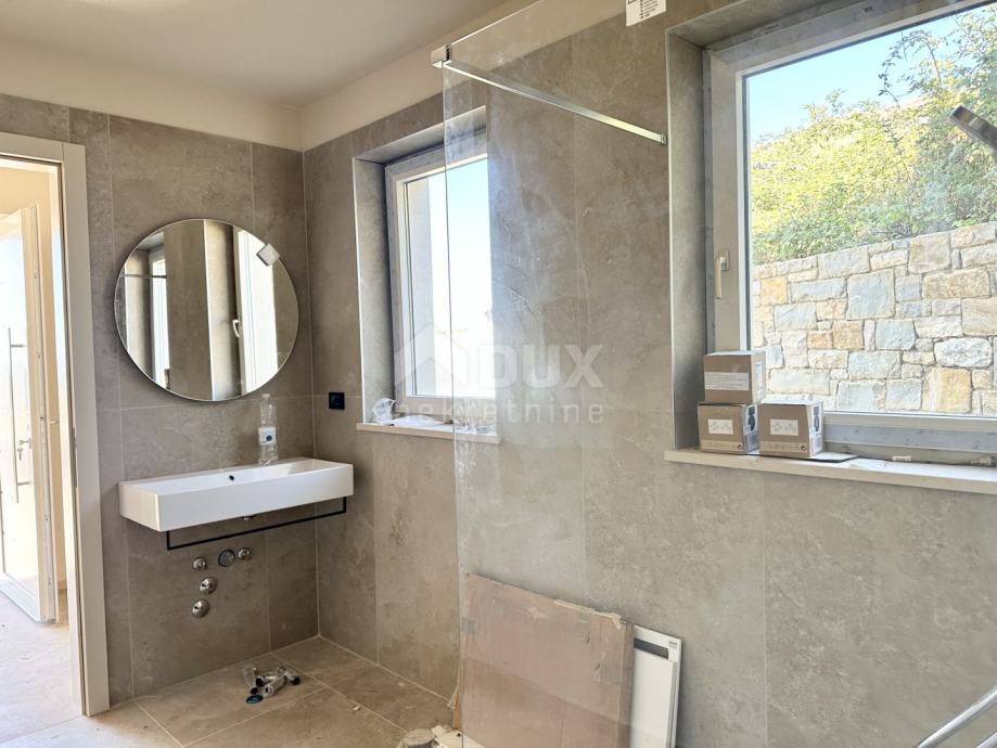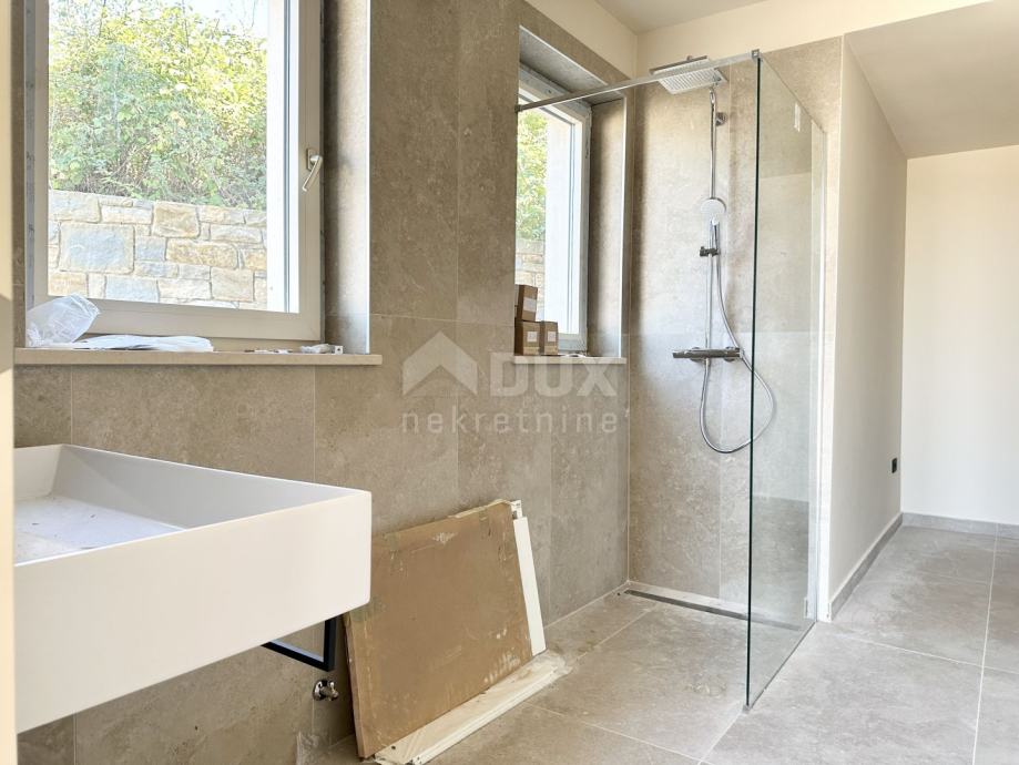 Impresivne stepenice vode na kat gdje ćete pronaći tri prostrane spavaće sobe, svaka s vlastitom luksuznom kupaonicom. Svaka od tih soba pruža udobnost i privatnost, savršene za vaše goste ili obitelj. Posebno treba istaknuti jednu od spavaćih soba koja ima vlastitu terasu s nevjerojatnim pogledom na prirodu i more, idealnu za jutarnju kavu ili opuštanje u zalazak sunca.