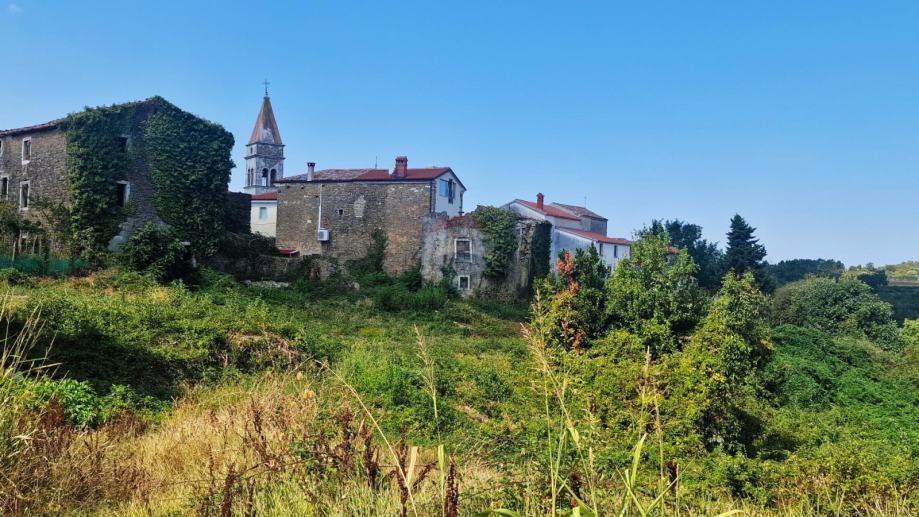 Na rubnom dijelu šarmantnog mjesta Momjan smjestio se kompleks kamenih kuća kojoj je potrebna potpuna adaptacija.