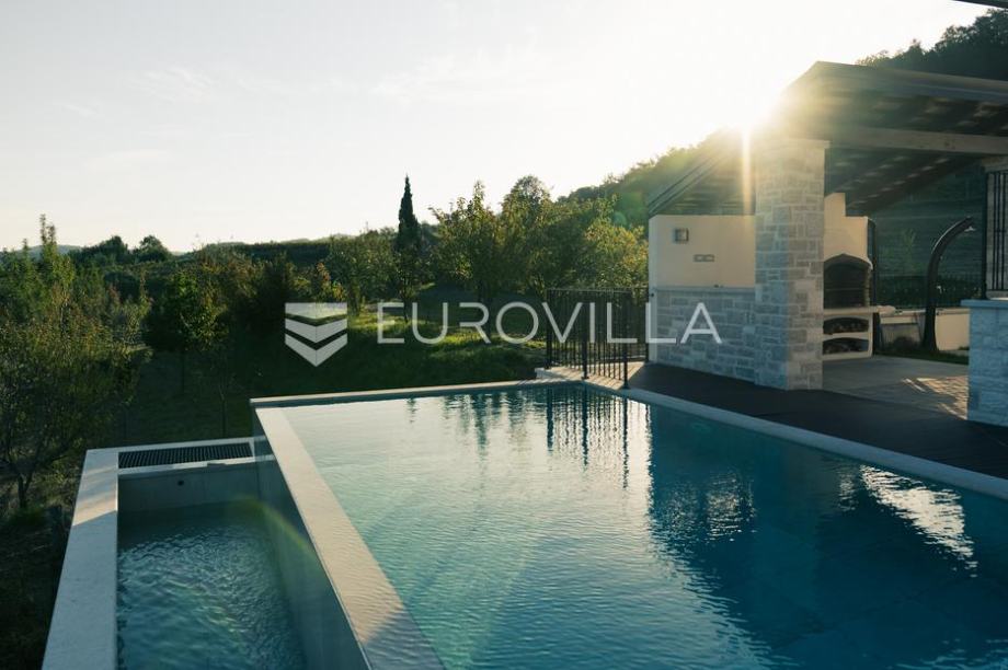 In Momjan there is this beautiful modern villa with a swimming pool surrounded by olive groves and vineyards. Exceptional quality of workmanship, complete in stone with details. The villa was built in 2023 and has never been used as a tourist rental.The villa is divided into three floors, basement,...