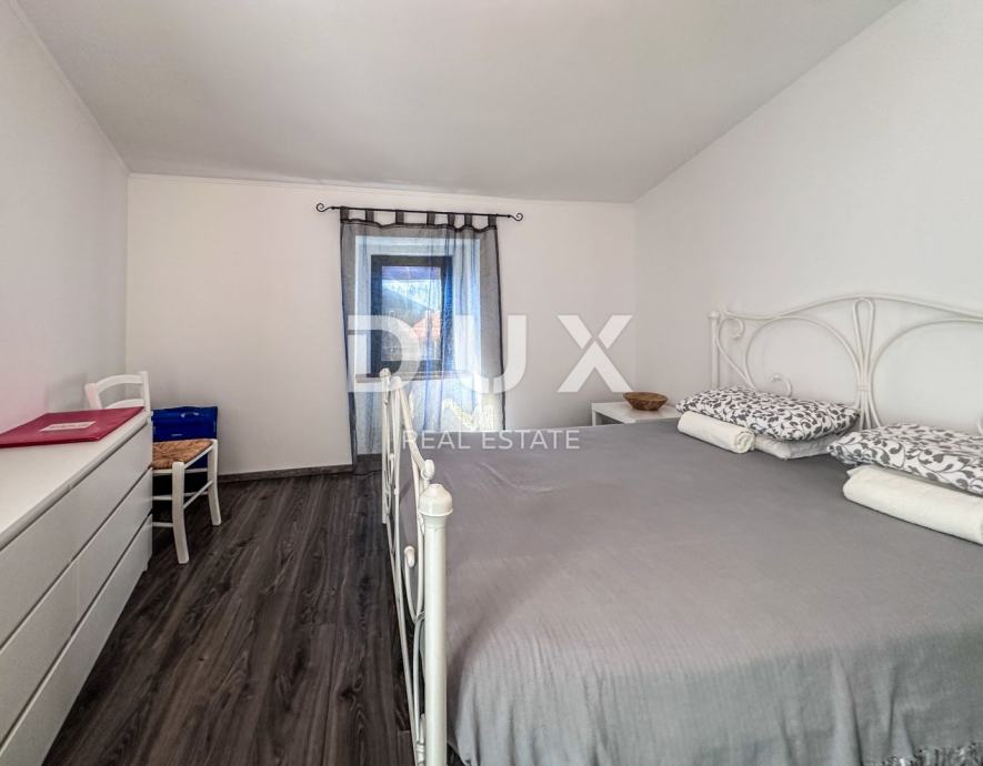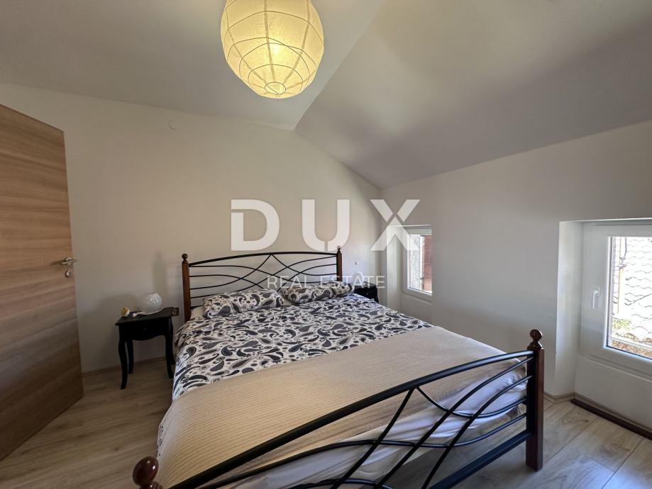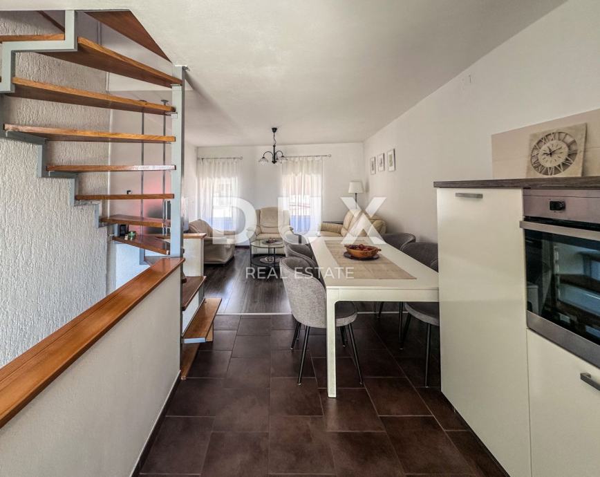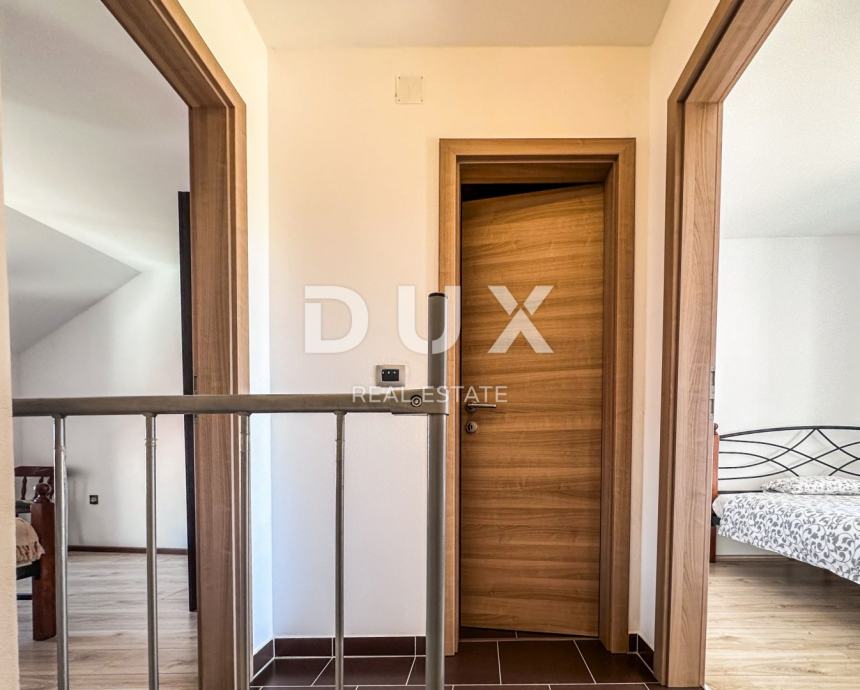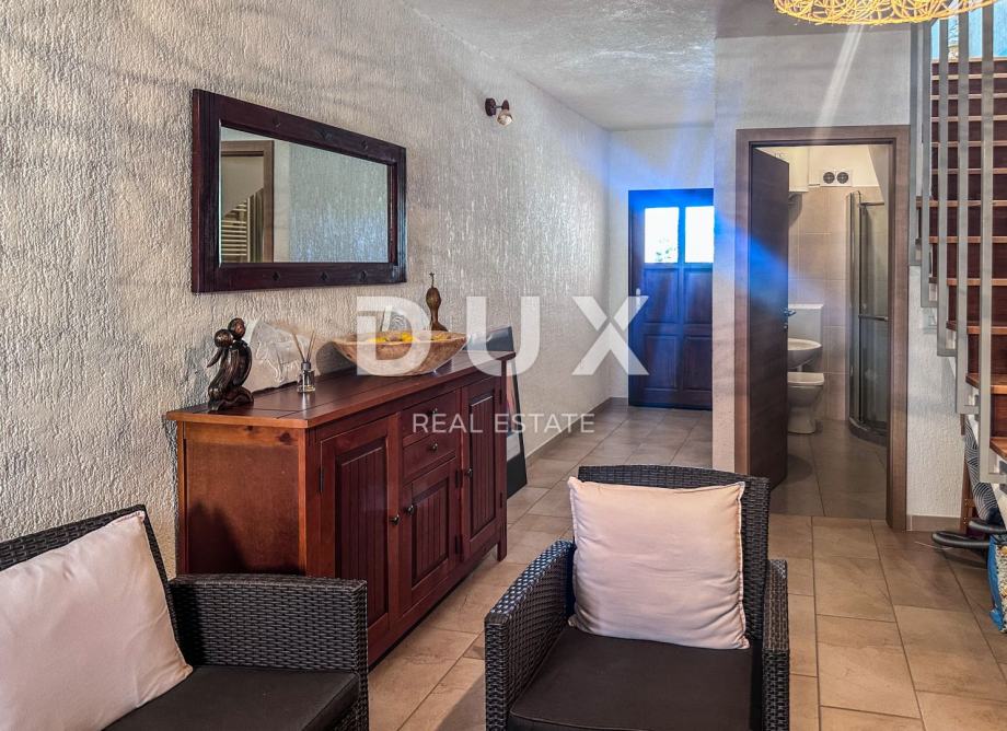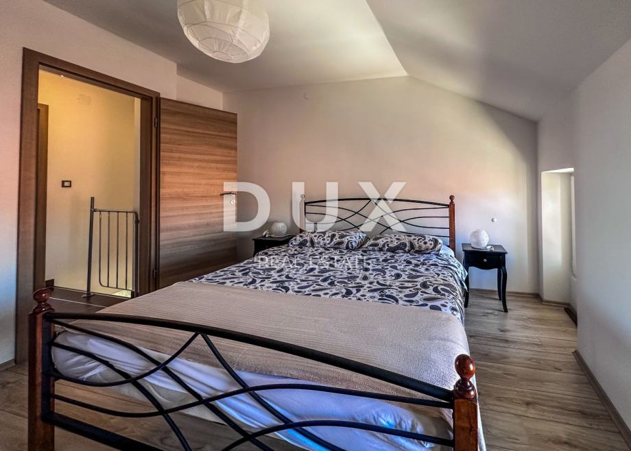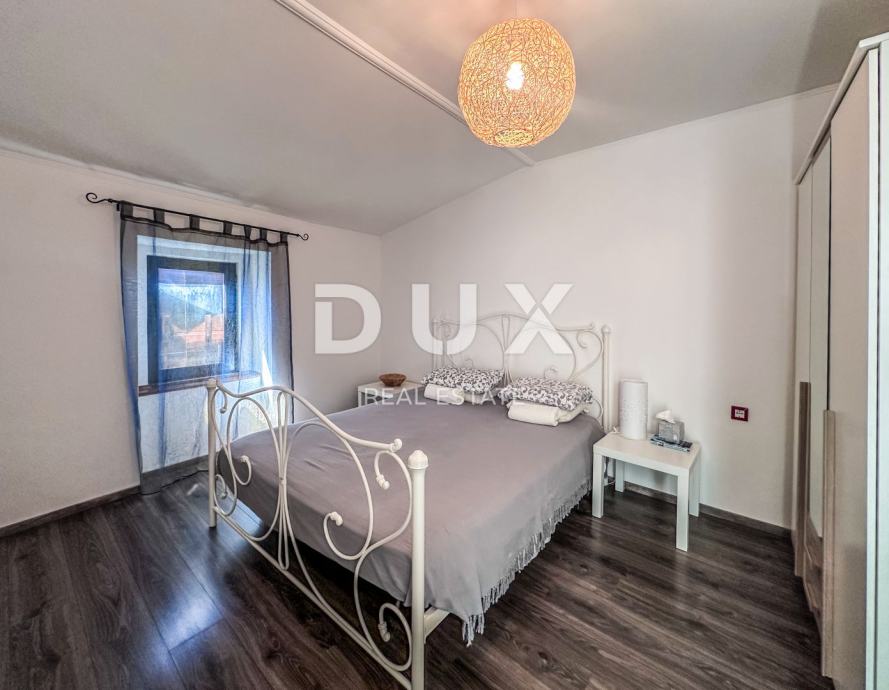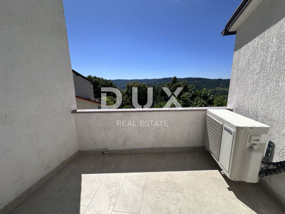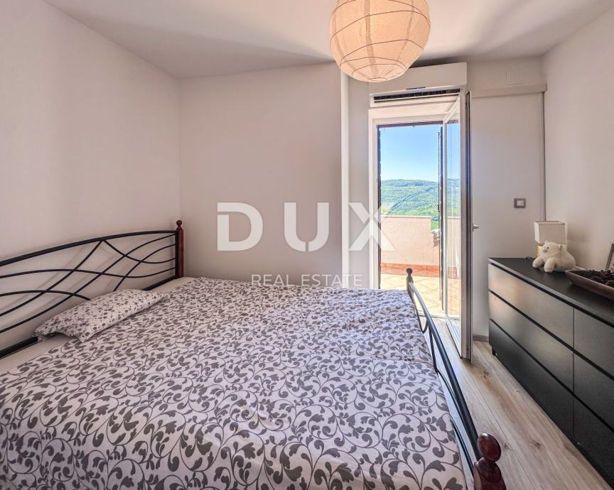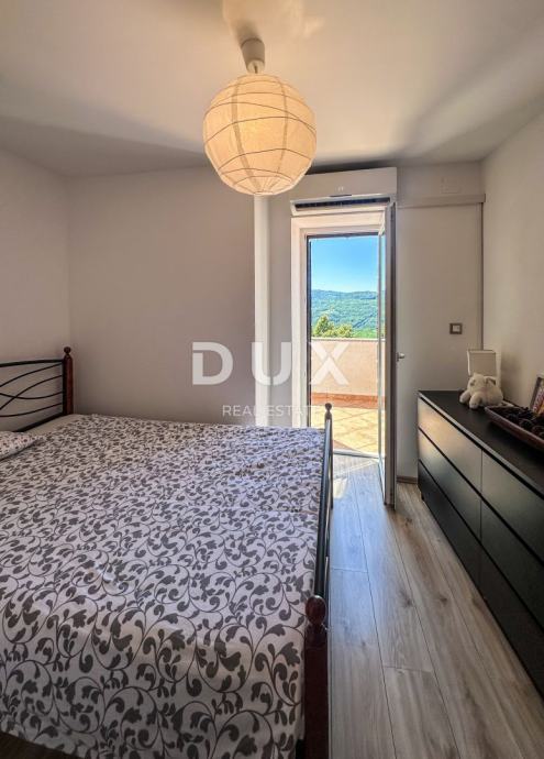 Prostire se na više etaža ukupne površine 150 m², a interijer je uređen u toplom mediteranskom stilu, spajajući kamen, drvo i moderno s puno ukusa i mjere. U kući se nalaze tri ugodne spavaće sobe, dvije moderno uređene kupaonice te prostran i svijetao dnevni boravak iz kojeg se pruža otvoreni pogled na zelene brežuljke i dolinu rijeke Mirne, prizor koji oduzima dah u svako doba dana. Svaka etaža ima svoj veliki balkon s panoramskim pogledom, idealan za opuštanje uz jutarnju kavu ili večernje uživanje u miru ovog magičnog gradića.